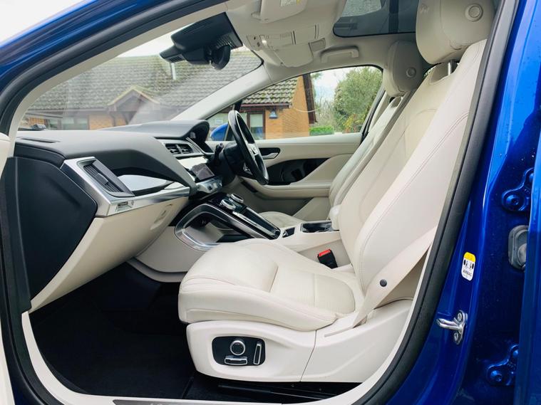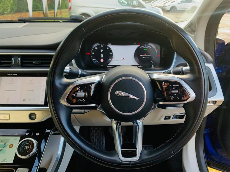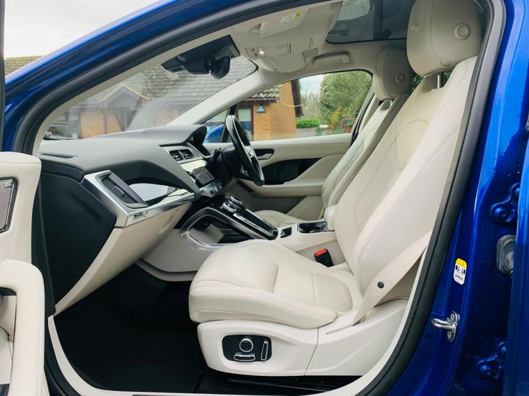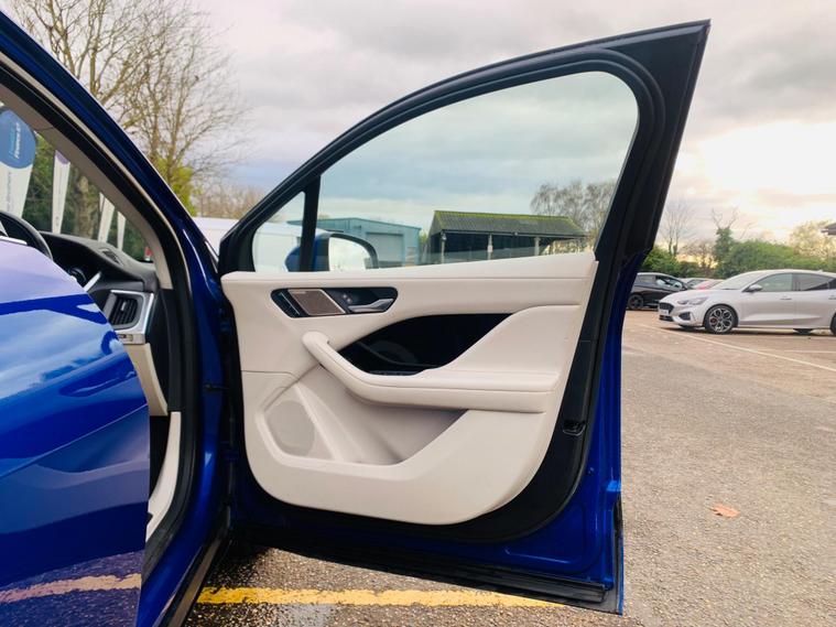 MOT IS TILL 5 December 2026, 1 OWNER SINCE NEW, HEATED SEATS AND STEERING WHEEL, 360 CAMERA, HUGE SPECS**This 2021 Jaguar I-PACE 400 SE offers an exceptional electric driving experience with its impressive 280 mile maximum range from new. As a fully electric vehicle, it boasts Four Wheel Drive capability and a substantial 90 kWh battery. Charging is convenient, taking approximately 12 hours and 36 minutes at home with a 7kW charger, or a rapid 50 minutes from empty to 80% at a public charging station. This SE trim level comes equipped with a suite of advanced features, including Bluetooth connectivity, Blind Spot Assist, a 360 Degree Surround Camera for effortless parking, and 12-way heated electric front seats with driver memory. Keyless entry adds to the convenience of this sophisticated electric SUV. The Jaguar I-PACE 400 SE stands out with its remarkable performance, accelerating from 0-60mph in just 4.5 seconds, demonstrating its dynamic capabilities. These highlights indicate how this vehicle offers a superior driving experience compared to other similar models. Furthermore, you will appreciate the generous boot space, providing ample room for luggage or shopping..