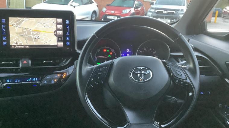 This 2019 Toyota C-HR VVT-h Design is a Toyota manufacturer approved vehicle, offering peace of mind with a 12 month warranty and a full service history. This stylish hatchback features a 1.8L petrol hybrid engine, meeting Euro 6 emissions standards. Inside, you'll find a comfortable cabin equipped with heated driver and front passenger seats, dual zone automatic air conditioning, and Bluetooth connectivity for seamless entertainment and communication. For convenience and safety, it includes Toyota Safety Sense with adaptive cruise control and a parking pack with front and rear sensors.The C-HR Design stands out with its impressive fuel economy, achieving up to 60 mpg, which indicates it is more economical than many similar vehicles. Furthermore, its low insurance group and low CO2 emissions highlight its cost effectiveness and environmental consideration compared to other cars in its class. This combination of efficiency, advanced features, and reassuring provenance makes it a compelling choice..