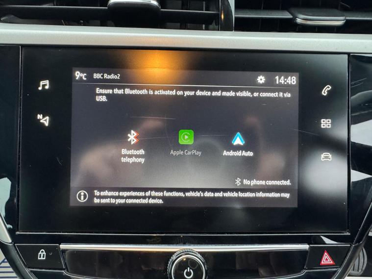 This 2021 Vauxhall Corsa SE is a great choice for those seeking an economical and well equipped car. Powered by a 1.2 litre petrol engine, this Euro 6 compliant model offers a fuel economy of up to 53 miles per gallon. The SE trim level ensures a comfortable and convenient driving experience, featuring essential amenities such as air conditioning to keep you cool. Connectivity is made simple with a smartphone interface that supports both Android Auto and Apple CarPlay, allowing seamless integration of your mobile device.Further enhancing your journeys, the Corsa SE is fitted with LED headlights for improved visibility and a front camera system to assist with parking. Enjoy your favourite music on the go with Bluetooth A2DP audio streaming. This particular Corsa stands out with its low insurance group and low CO2 emissions, indicating it is more cost effective to run and more environmentally friendly compared to many other vehicles in its class..