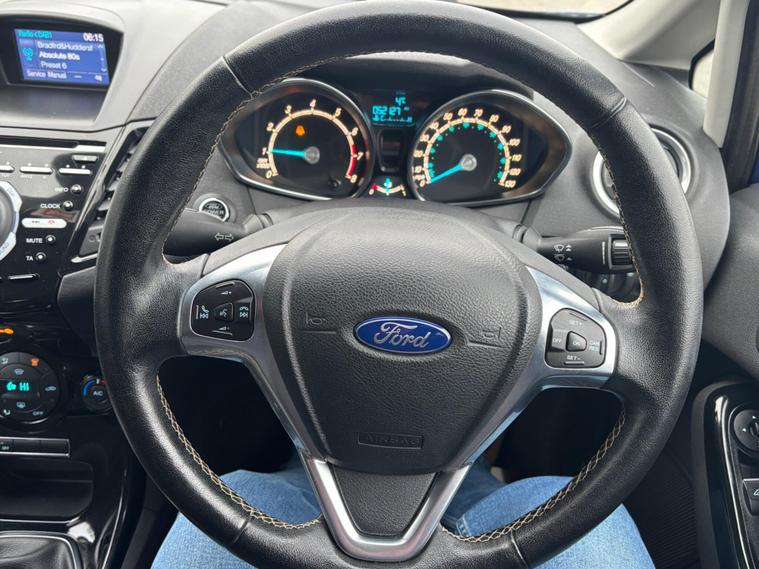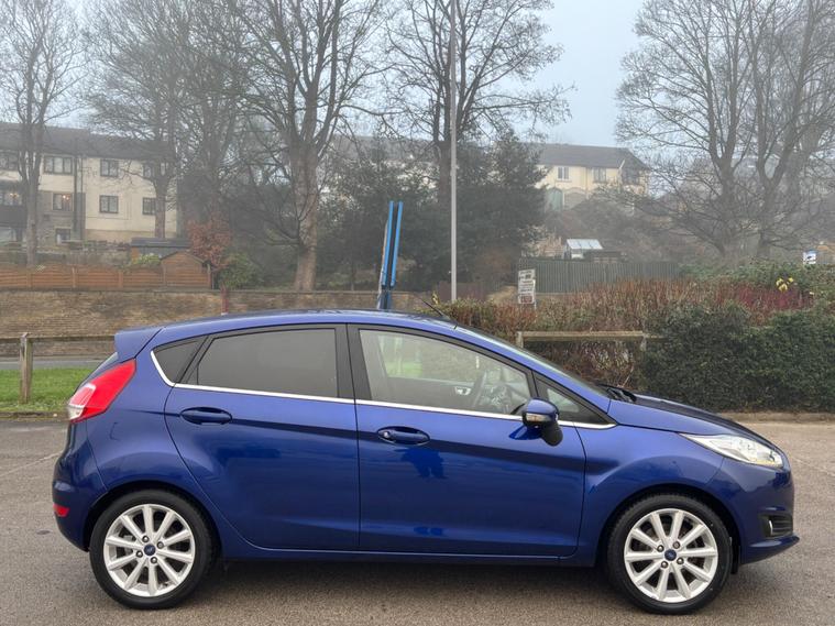 WE ARE PLEASED TO OFFER THIS HIGHLY DESIRABLE HIGH SPECIFICATION HIGHLY MAINTAINED ECONOMICAL LOW MILEAGE LOW ROAD TAX LOW INSURANCE RATED FORD FIESTA 1.0 T Ecoboost TITANIUM EURO SIX PETROL FIVE DOOR + FINISHED IN THE BEST COLOUR OF DEEP IMPACT BLUE METALLIC AND IS COMPLEMENTED WITH A BLACK LITHOS CLOTH UPHOLSTERY + ONLY A MERE 52, 117 MILES HAS BEEN COVERED IN TOTAL BY TWO OWNERS + LAST LADY OWNER SINCE AUGUST 2017 AND IS BACKED WITH AN EXCELLENT SERVICE HISTORY WHICH IS COMPRISED OF TEN SERVICES + THE SERVICES HAVE BEEN CARRIED OUT AT 6911 MILES, 11912 MILES, 18904 MILES, 27509 MILES, 30772 MILES, 36502 MILES, 39962 MILES, 43897 MILES, 49191 MILES AND 52117 MILES WHICH INCLUDED THE WETBELT / CAMBELT BEING CHANGED + THE MOT IS TILL THE 17TH OF DECEMBER 2026 + EXCEPTIONAL CONDITION THROUGHOUT AND DRIVES SUPERB + 100 BHP MODEL + FULL TITANIUM SPECIFICATION WHICH INCLUDES DAB TUNER / CRUISE CONTROL / FULL ELECTRIC PACK WITH POWER FOLD DOOR MIRRORS / HEATED FRONT WINDSCREEN / BLUETOOTH HANDS FREE PHONE PACK / 16'' MULTI SPOKE ALLOY WHEELS / KEYLESS START PLUS MUCH MORE + HANDBOOK PACK + FULLY STAMPED SERVICE BOOK + 2 X KEYS + ANY TRIAL OR INSPECTION IS WELCOMED + HPI CLEAR WITH CERTIFICATE + SIX MONTHS NATIONWIDE WARRANTY IS INCLUDED + VIEWING IS ESSENTIAL TO APPRECIATE THIS TRULY CHERISHED EXAMPLE AND MUST NOT BE CONFUSED WITH LESSER EXAMPLES AVAILABLE. We have been established in Baildon for over 20 years. All our vehicles are fully inspected, prepared and valeted. We are finance specialists. Part exchange is welcome. All major credit and debits accepted. Open 7 days. Our postcode is BD177EX..