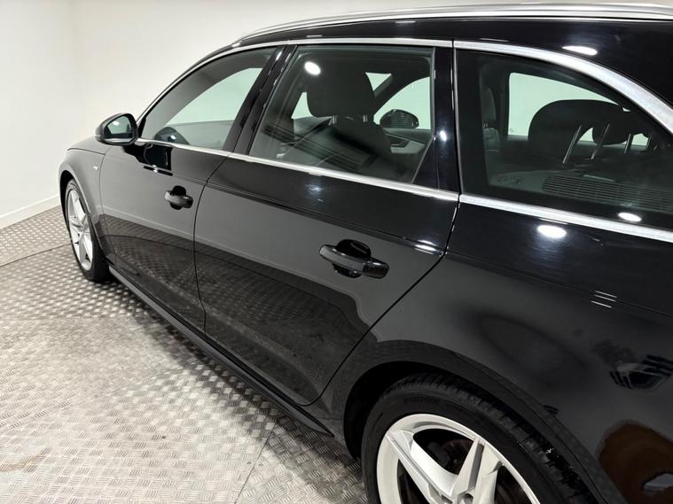 This A4 Avant has only had 2 owners from new and has been serviced at 9-23-35-43-49-61-77k miles with the cam belt changed at 43k miles. Finished in black with black part leather interior and supplied with 2 keys, features include heated front seats, perfect for colder mornings, satellite navigation, front and rear parking sensors and DAB radio. Driving is made easier with LED headlights that include dynamic rear indicators, and the light and rain sensor automatically manages your headlights. Stay connected on the go with the integrated Bluetooth interface, and enjoy personalised comfort thanks to the deluxe 3 zone electronic climate control.The Audi A4 Avant TFSI S line is designed to impress, with a notable fuel economy of 50 miles per gallon, indicating its efficiency compared to many other vehicles. Its low CO2 emissions further highlight its environmentally conscious design. With an MOT valid until October 2026, this vehicle is ready for your journeys.SpecificationsThe data displayed above details the usual specification of the most recent model of this vehicle. It is not the exact data for the actual vehicle being offered for sale and data for older models may vary slightly. We recommend you check the vehicle details with your sales advisor before you buy..