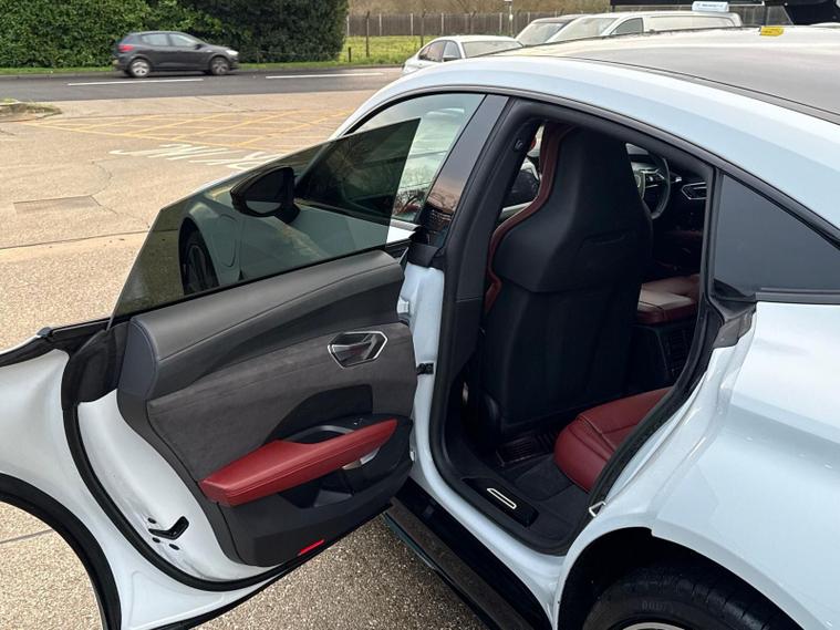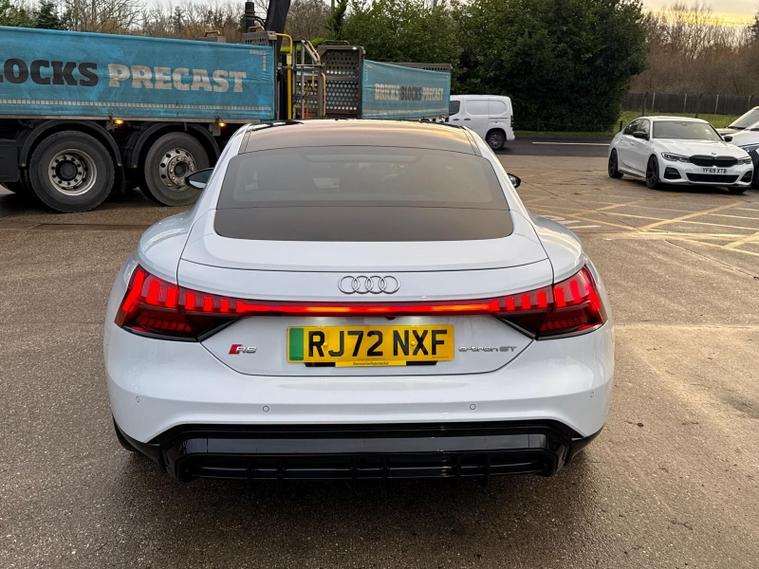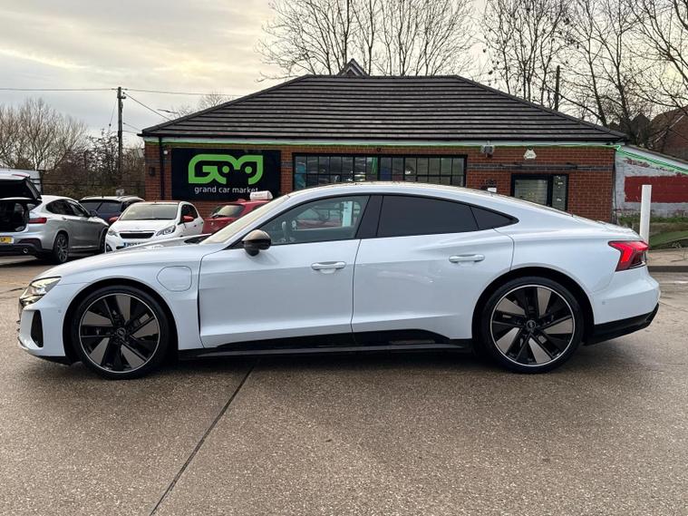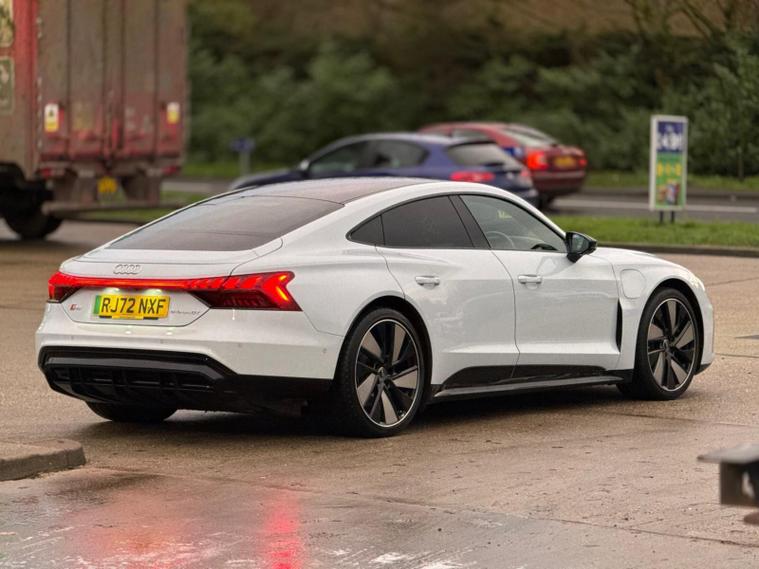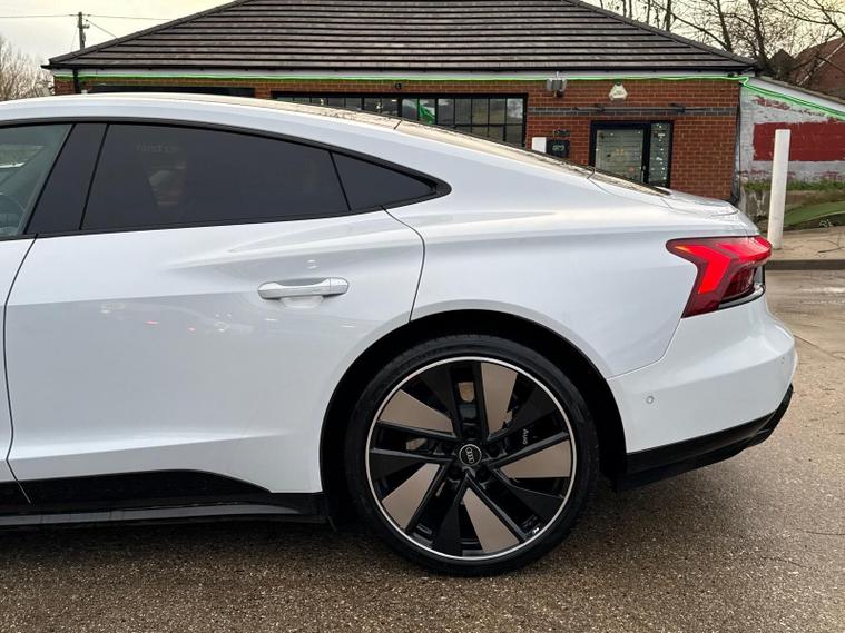 This 2022 Audi RS e-tron GT presents a remarkable opportunity with exceptionally low mileage for its age, having covered just 17593 miles. As a fully electric, four wheel drive performance saloon, it boasts a substantial 93 kWh battery offering a maximum range of 294 miles when new. Charging is convenient, with a full charge at home taking approximately 14 hours using a 7kW charger, while rapid public charging can replenish the battery from empty to 80% in as little as 24 minutes. Inside, you'll find a wealth of premium features including MMI Navigation Plus with MMI Touch and Bluetooth connectivity, heated front seats for comfort, and a panoramic glass sunroof that floods the cabin with light. The driving experience is further enhanced by LED headlights with Function-On-Demand preparation and a heated three-spoke flat bottom steering wheel.The performance of this Audi RS e-tron GT is truly exceptional, highlighted by its breathtaking acceleration from 0-62mph in just 3.6 seconds. This rapid acceleration demonstrates its superior engineering and power delivery compared to many other vehicles in its class. The combination of its electric powertrain, advanced four wheel drive system, and aerodynamic design ensures a dynamic and engaging drive, making it a standout choice for those seeking both cutting edge technology and exhilarating performance..