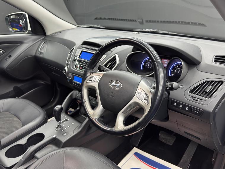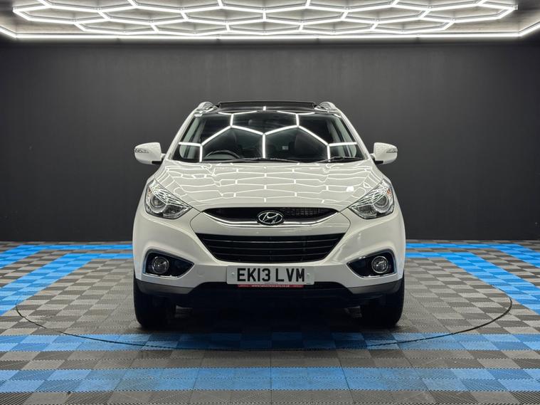 Here at Motor Gurus we are delighted to offer a Hyundai ix35 2.0 CRDi Premium Auto 4WD. This vehicle is in immaculate condition inside and out. This specific vehicle is finished in a GLOSS WHITE and is contrasted by a BLACK LEATHER/CLOTH interior. This vehicle comes included with: REAR PARKING SENSORS, PRIVACY GLASS, SLIDING GLASS PANORAMIC ROOF, AUTOMATIC HEADLIGHTS, CRUISE CONTROL, TWIN CUPHOLDERS, DRIVING MODES, FRONT & REAR HEATED SEATS, CLIMATE CONTROL, FM RADIO, BLUETOOTH AUDIO, TELEPHONE CONNECTIVITY AND MUCH MORE! Our Hyundai ix35 2.0 CRDi Premium Auto 4WD has come to us with 2 KEYS and will also come provided with a 12 MONTH MOT as well as a FRESH OIL SERVICE before it leaves our premises (OTR)..
