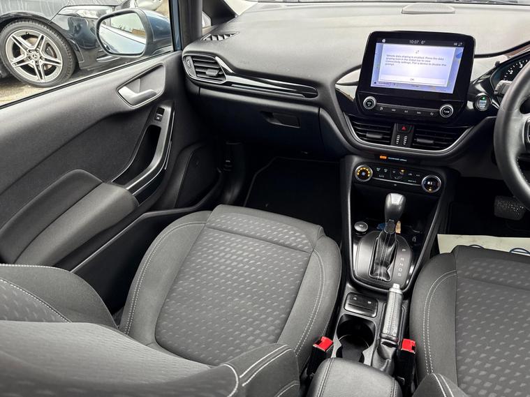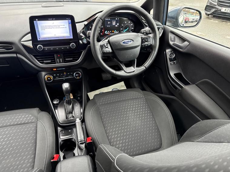 This 2019 Ford Fiesta T Titanium is a Euro 6 compliant vehicle, offering an efficient and enjoyable driving experience. Powered by a 1.0L petrol engine, this model boasts the Titanium trim, known for its comprehensive suite of features. Notable additions include automatic on-off headlights, which also include automatic high beam functionality for enhanced visibility and safety. The interior comfort is managed by Electronic Automatic Temperature Control air conditioning, ensuring a pleasant cabin environment in all conditions.Further enhancing its appeal, this Fiesta comes equipped with the Ford Navigation System, featuring Ford SYNC 3. This system seamlessly integrates with your smartphone, offering both Apple CarPlay and Android Auto compatibility for easy access to your favourite apps and navigation. The inclusion of FordPass Connect, with its embedded modem, provides advanced connectivity features. These highlights demonstrate how this particular Ford Fiesta T Titanium offers a superior level of technology and convenience compared to other vehicles in its class..