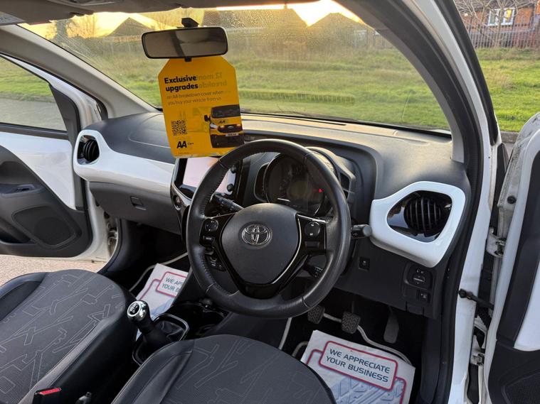 Toyota AYGO 1.0 VVT-i x-pression Hatchback 5dr HPI ClearFeatures & Highlights:Parking CameraAlloy WheelsAir ConditioningLow Insurance Group – Ideal First CarVery Economical to RunULEZ Free – Drive Anywhere Without ChargesCondition & Drive:This Toyota AYGO x-pression is in excellent condition inside and out. Very well maintained with a smooth and reliable engine. The gearbox and suspension are very smooth, making it comfortable and easy to drive. Seats are supportive and the car drives exactly as it should.Peace of Mind:Warranted MileageHPI ClearMechanically Perfect – just buy & drive awayFRESH SERVICE, FRESH MOT, FREE BREAKDOWN COVER, NATIONWIDE DELIVERY AVAILABLEWhy Buy This Car?A reliable, stylish and economical city car with low running costs. Looks and drives brilliant – first to see will buy!Viewings:View by Appointment OnlyPart Exchange Welcome.