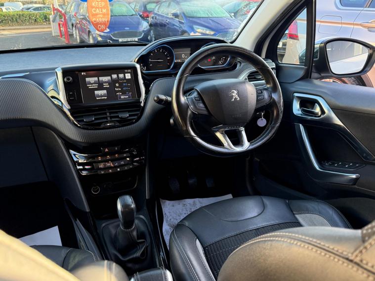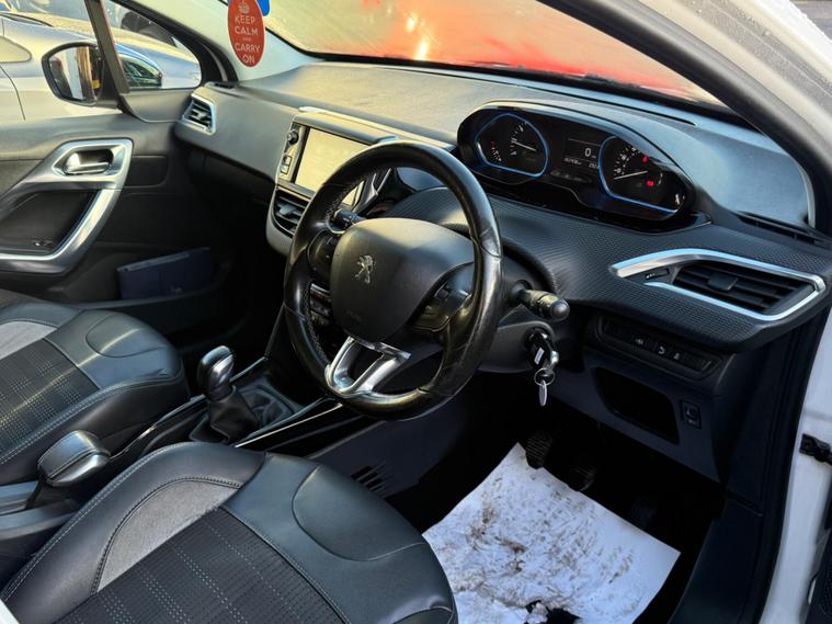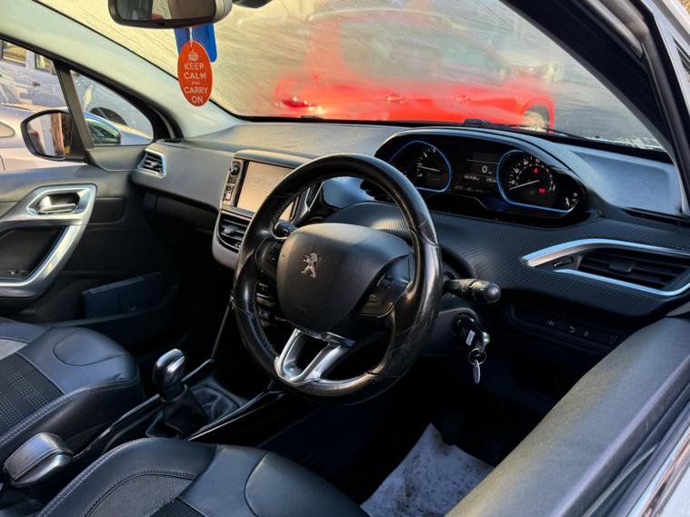 This 2015 Peugeot 2008 Allure is a superb example of a well maintained compact SUV. Powered by an efficient 1.2 litre Euro 6 compliant petrol engine, this model offers a refined driving experience. Inside, you will appreciate the premium feel of the Midnight Black leather upholstery, complemented by automatic dual zone air conditioning for consistent comfort. Connectivity is made simple with Bluetooth audio streaming, and parking is made easier thanks to the rear parking aid. The headlights automatically adjust to light conditions, ensuring optimal visibility.This Peugeot 2008 Allure stands out with its impressive fuel economy, achieving a highlight of 58 miles per gallon, which indicates it is more economical than many similar vehicles. Furthermore, its low CO2 emissions and low insurance group rating suggest that running costs are kept to a minimum, making it a sensible choice for many drivers..