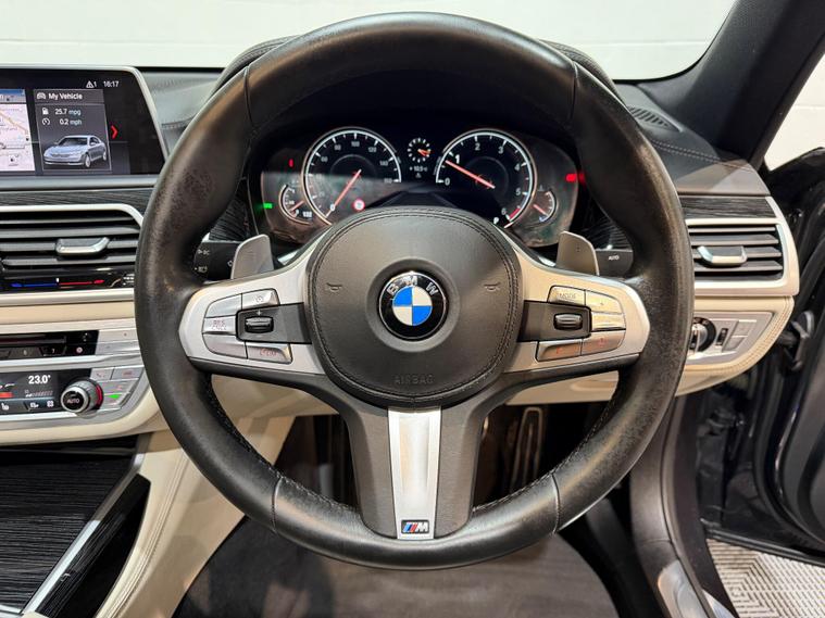 Introducing the BMW 7 Series 3.0 740Ld M Sport Auto xDrive Euro 6, finished in the elegant Singapore Grey, a flagship saloon that delivers outstanding comfort, refinement and presence. This example benefits from a full service history and has clearly been very well looked after, reflecting the level of care you would expect from a car of this calibre.Externally, the 7 Series carries itself with confidence, sitting on stunning 19-inch M Sport alloy wheels that perfectly complement its long, low stance. The clean lines and subtle M Sport detailing give the car a commanding yet understated appearance, ideal for both business use and long-distance cruising.Inside, the cabin is a true luxury environment. The interior is finished in Ivory White Nappa leather with a Black contrast, paired with Fineline Black high-gloss wood trim with metal effect, creating a bright and premium feel. Both front and rear seats are heated, while the front seats feature massage functionality, along with full electric adjustment, lumbar support and memory settings, ensuring maximum comfort for driver and passenger. Rear passengers are equally well catered for with reclining rear seats, making this an exceptional place to relax on longer journeys.The driving experience is enhanced by a host of intelligent features, including ambient lighting throughout the cabin, a sunroof that fills the interior with natural light, cruise control, and an electric steering column that adjusts effortlessly to your preferred driving position. Everyday usability is made simple thanks to Apple CarPlay, a reversing camera, and front and rear parking sensors, allowing for easy manoeuvring in any situation.Refined, powerful and exceptionally comfortable, this BMW 740Ld M Sport xDrive represents luxury motoring at its finest, delivering a smooth, quiet and effortless drive where every journey feels truly special..