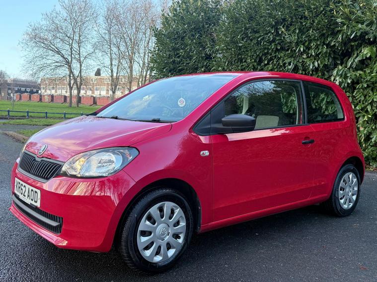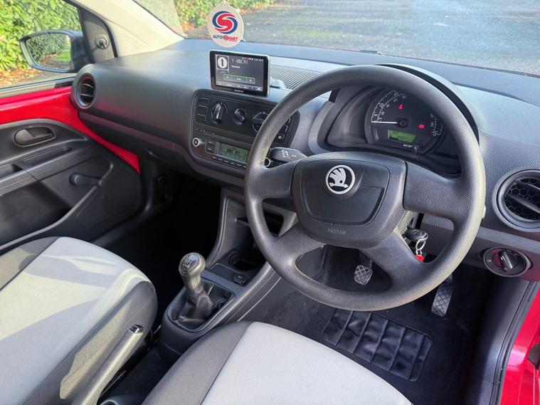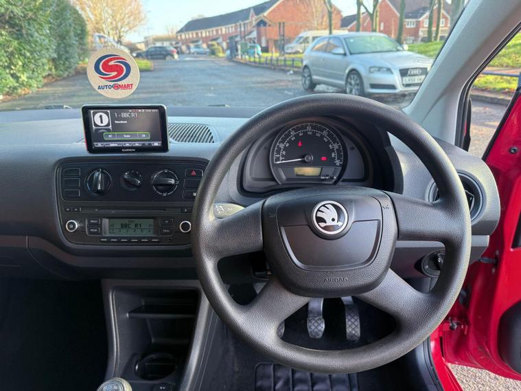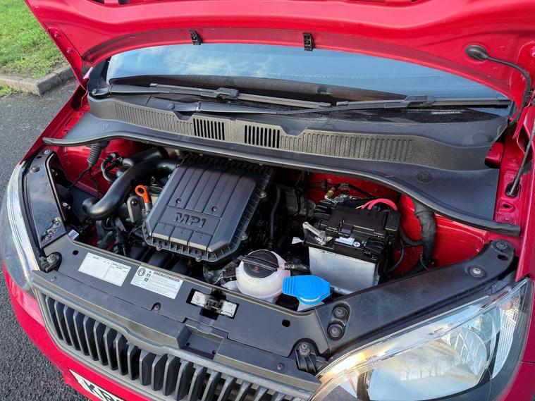 Skoda CitiGO in tornado red paint, Group 1 insurance rating & £20 annual road tax mean that this would make for a perfect first car for a new driver, equipment includes Bluetooth connectivity for calls and music, satnav, aux connectivity and not much else! Simple and basic reliable motoring. Full service history is present with the car to show it has been well looked after for, condition is very good all round, drives great. Will leave us with a fresh service and a full 12 months MOT for added peace of mind..