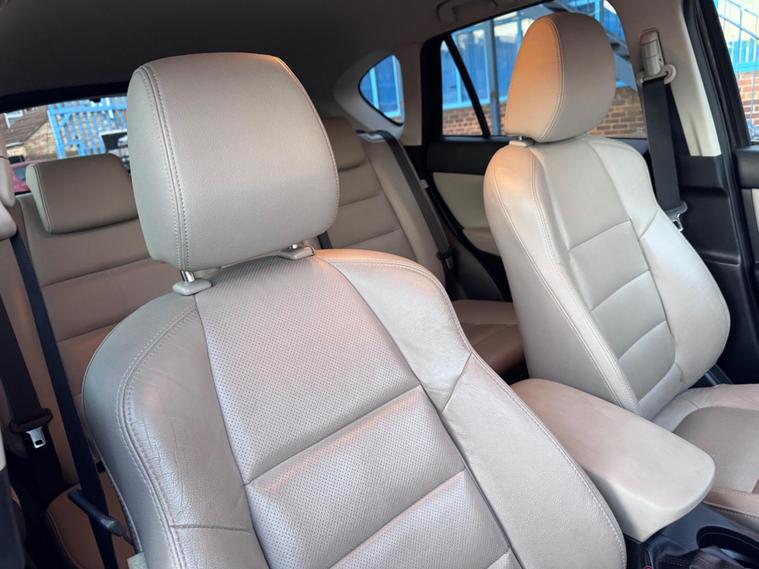 This 2013 Mazda CX-5 SKYACTIV-D Sport Nav is a well maintained example, offering a blend of style and practicality. Powered by a 2.2 litre diesel engine, this Euro 6 compliant model boasts impressive fuel economy, achieving up to 61 miles per gallon. Inside, you'll find comfortable Light Stone leather upholstery, complemented by a premium BOSE Centrepoint Surround Sound System with nine speakers and a 6CD changer for your entertainment. The Sport Nav trim also includes advanced keyless entry, dual zone climate control for personalised comfort, and dusk sensing automatic headlights that adjust to changing light conditions.This CX-5 stands out with its excellent fuel efficiency, making it an economical choice for your journeys. Its low CO2 emissions are also a significant advantage, contributing to a lower environmental impact. Furthermore, this model benefits from a low insurance group, which can help to reduce your running costs. The generous boot space ensures you have ample room for luggage, shopping, or sports equipment, making it a versatile option for families and individuals alike..