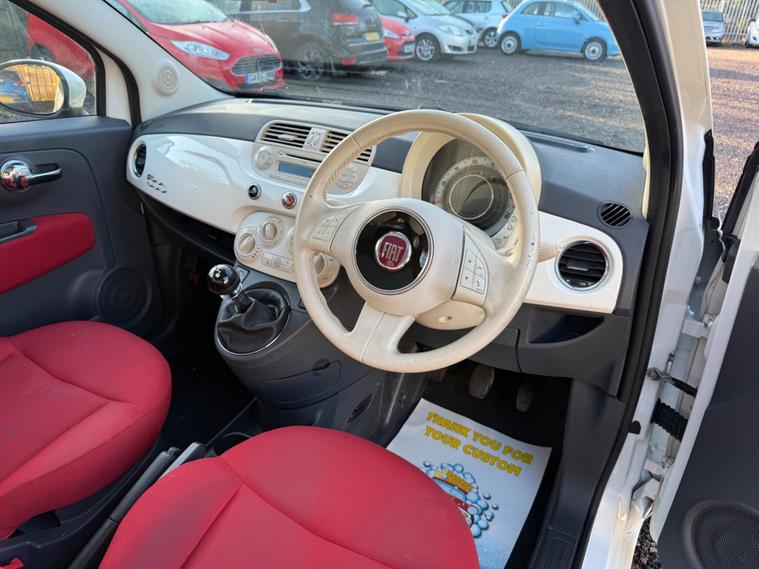 Discover this charming 2014 Fiat 500 Lounge, a stylish city car that offers an excellent blend of practicality and flair. Powered by an efficient 1.2L petrol engine, this Euro 6 compliant model is designed for economical driving. Inside, you'll find comfort and convenience with its air conditioning system, ensuring a pleasant journey whatever the weather. The Blue&Me hands free system with a USB port allows for seamless connectivity, while the fixed glass roof with a sunblind floods the cabin with light, creating an airy and open feel.This Fiat 500 Lounge stands out with its impressive fuel economy, achieving a remarkable 59 miles per gallon, which is better than many other vehicles in its class. Its low CO2 emissions further contribute to its cost effectiveness and environmental consideration. Additionally, being in a low insurance group means that running costs are kept to a minimum, making this a particularly sensible choice for many drivers..