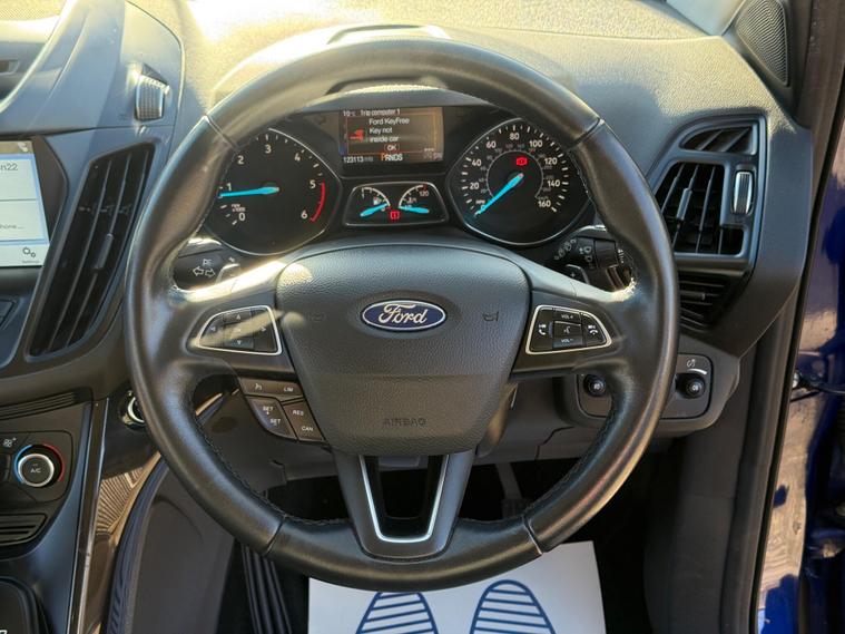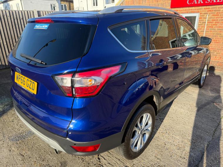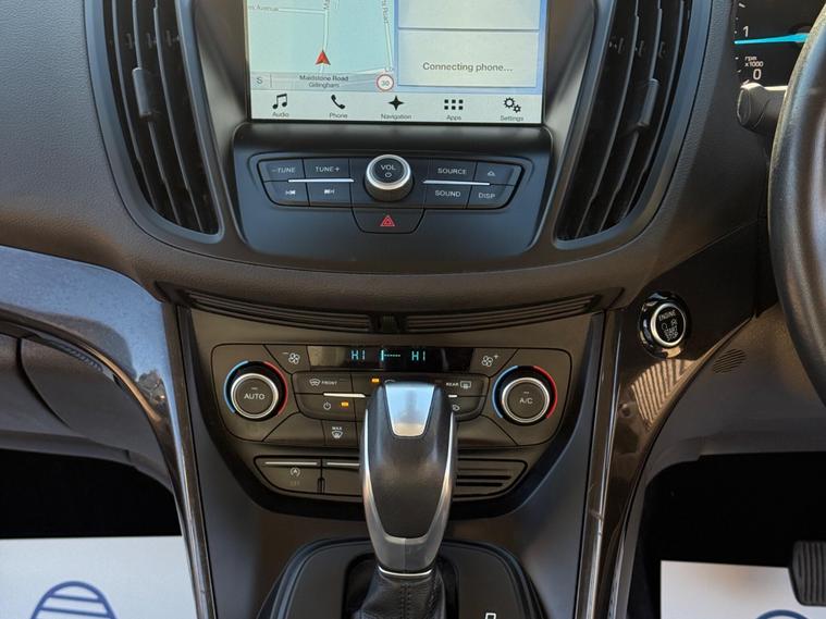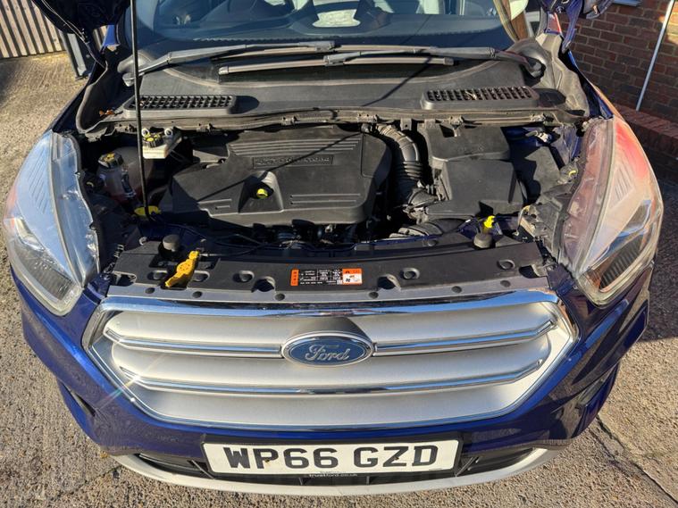 This 2016 Ford Kuga TDCi Titanium boasts full service history, a clear vehicle history check and an MOT valid until October 2026, offering you peace of mind. Powered by a robust 2.0L Diesel engine and featuring Four Wheel Drive capability, this Euro 6 compliant model is equipped with a Premium Ford DAB Navigation System with Ford SYNC3, including Bluetooth, voice control, and USB connectivity. You'll also find a rear view camera integrated with parking assistance, dual zone electronic automatic temperature control for your comfort, and automatic halogen headlights with distinctive LED daytime running lights.The Ford Kuga TDCi Titanium stands out with its impressive fuel economy, achieving a remarkable 54 miles per gallon, which indicates its efficiency compared to similar vehicles. Furthermore, its low CO2 emissions highlight its environmentally conscious design and a Euro-6 engine making this car ULEZ compliant. This combination of practical features, strong performance, and economic benefits makes this Kuga a compelling choice. the car also comes with a 6 month warranty.