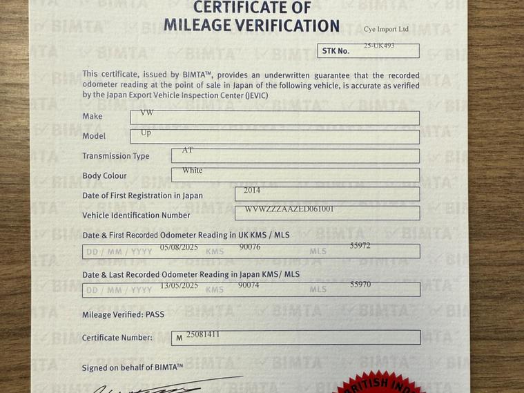 We are known for our carefully sourced Japanese imports – All are inspected, registered, and ready for UK roads to drive away with confidence. We also include 6 months nationwide warranty cover with every vehicle for extra peace of mind, Every vehicle we sell is hand-picked for quality, condition, and value, no shortcuts and no compromises.Discover this 2014 Volkswagen up, a stylish and practical city car. This model boasts a responsive 1.0 litre petrol engine, perfect for navigating urban streets with ease. Inside, you'll find a comfortable and convenient cabin, featuring air conditioning to keep you cool during warmer weather. Both low insurance and running costs make this a must for around small town car but equally at home on a longer journey The Volkswagen up! offers a refined driving experience that sets it apart. The inclusion of air conditioning demonstrates a commitment to passenger comfort, making every journey more enjoyable. Furthermore, the integrated safety. This combination of thoughtful features ensures the up! is a superior choice for those seeking a well equipped and user friendly compact vehicle..