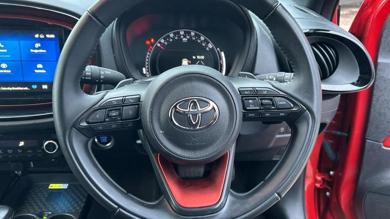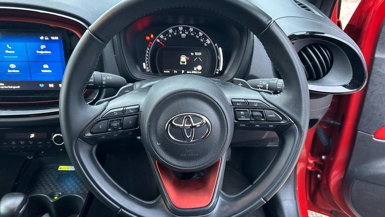 This 2022 Toyota Aygo X VVT-i Exclusive is a Toyota manufacturer approved vehicle, offering peace of mind with a 12 month warranty and a full service history. This stylish hatchback features a 1.0L Petrol Engine, meeting Euro 6 emissions standards. Inside, you'll find convenient features such as wireless smartphone integration, compatible with both Android Auto and Apple CarPlay, alongside smart entry and start with keyless entry. For enhanced driving comfort and safety, it is equipped with Toyota Safety Sense, including adaptive cruise control, with the intelligent adaptive cruise control switch conveniently located on the steering wheel. The Exclusive trim also boasts remote automatic air conditioning, providing climate control at your fingertips.The Toyota Aygo X Exclusive stands out with its impressive fuel economy, achieving a highlight of 57 mpg, which indicates it is more economical than many similar vehicles. Furthermore, its low insurance group and low CO2 emissions highlight its cost effectiveness and environmental consideration, making it a sensible choice for many drivers..