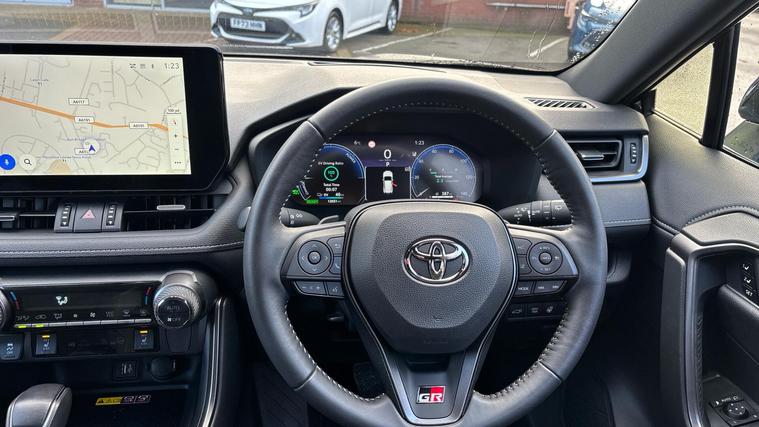 This 2024 Toyota RAV4 VVT GR SPORT is a Toyota manufacturer approved vehicle, offering peace of mind with a 12 month warranty and a full service history. This four wheel drive, Euro 6 compliant model boasts a powerful 2.5 litre petrol plug in hybrid engine, combining efficiency with performance. Inside, you'll find a host of convenient features including a remote air conditioning system, heated driver and front passenger seats, and a driver's seat with memory function. The automatic on headlights and intelligent front and rear parking sensors with clearance sonar and automatic braking further enhance the driving experience.The GR SPORT trim level truly sets this RAV4 apart, offering a dynamic and engaging drive. Its impressive acceleration, reaching 0 to 62 miles per hour in just 6.0 seconds, demonstrates its superior performance compared to similar vehicles. Furthermore, the generous boot space ensures practicality for all your needs, making this RAV4 a versatile choice for any journey..