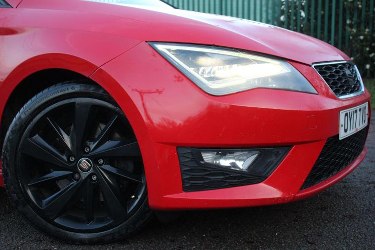This 2017 SEAT Leon TDI FR Titanium offers a compelling blend of performance and practicality. Powered by a robust 2.0 litre Euro 6 diesel engine, this model delivers an impressive 0-62mph acceleration in just 7.4 seconds, showcasing its dynamic capabilities. The FR Titanium trim ensures a high specification, featuring a sophisticated navigation system with Bluetooth connectivity, a Media System Plus also with Bluetooth, and full LED headlights for enhanced visibility. Comfort is further assured with dual zone climate control, allowing both driver and passenger to set their preferred temperatures independently.Beyond its performance credentials, this SEAT Leon boasts a generous boot space, making it an ideal choice for families or those who require ample storage for luggage or shopping. The inclusion of rear parking sensors provides added convenience and confidence when manoeuvring in tight spaces. These features, combined with its efficient diesel engine and sporty FR Titanium styling, position this Leon as a superior option for those seeking a well equipped and engaging driving experience..