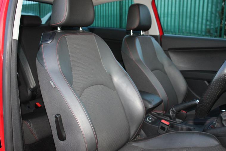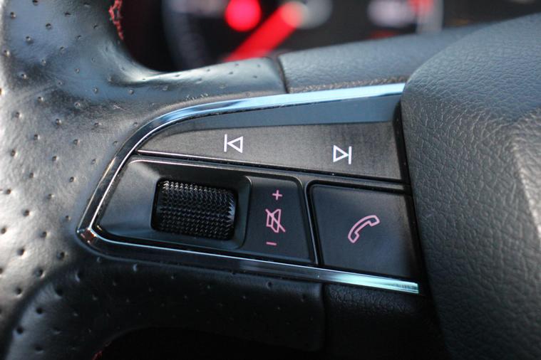 - Steering Wheel - Flat-Bottomed Perforated Leather with Red Stitching and FR Logo