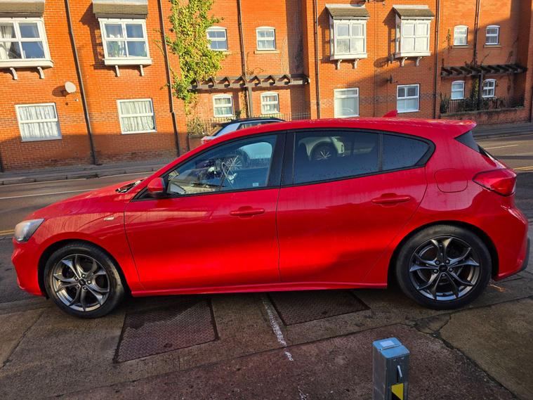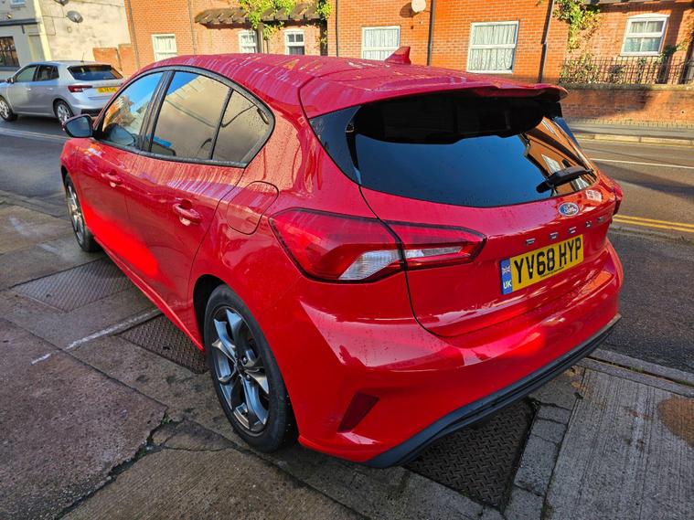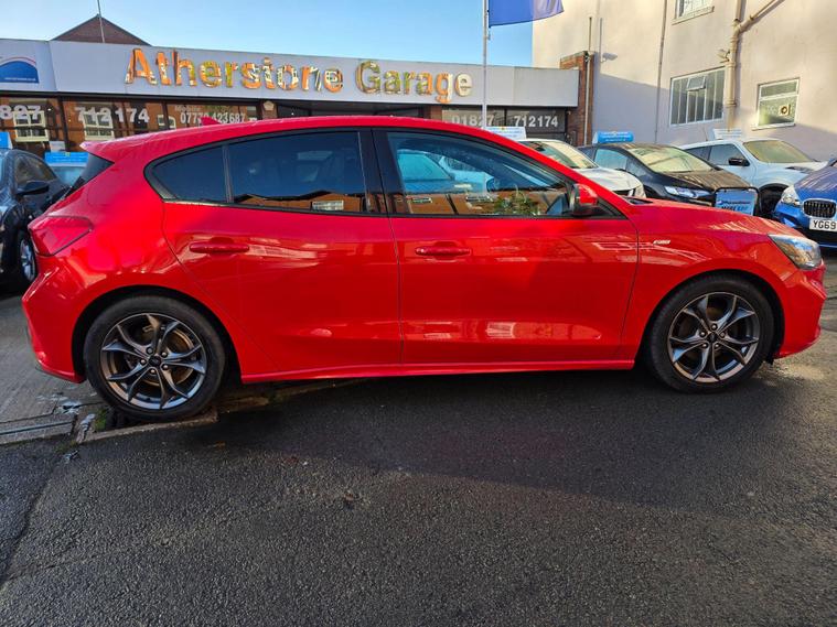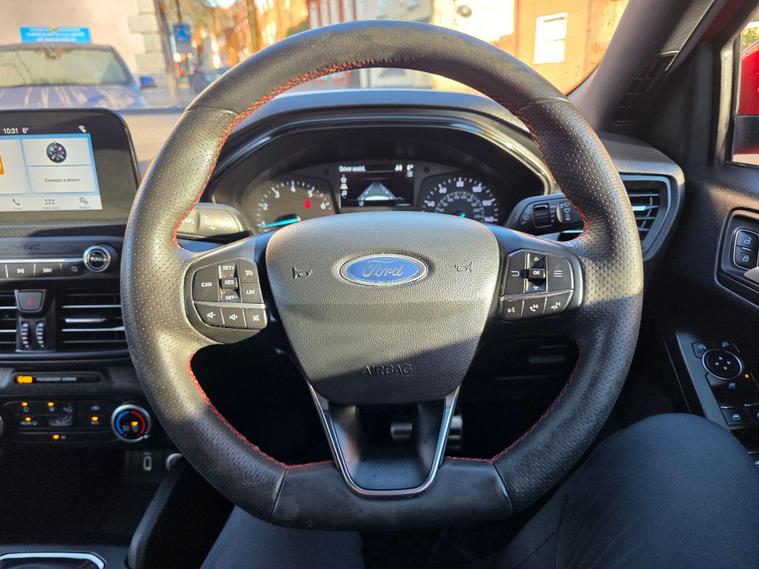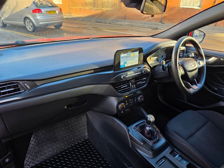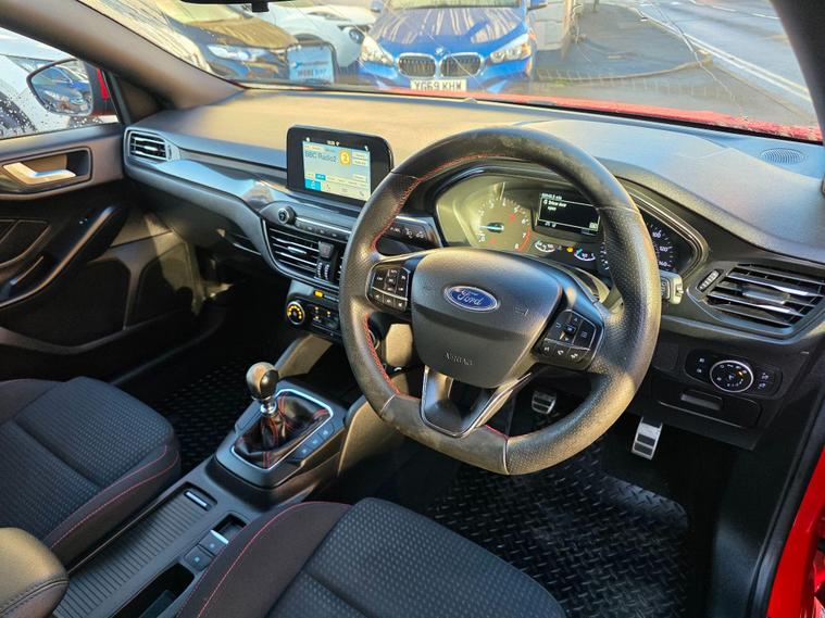 3 MONTHS WARRANTY & FIRST 3 MONTHS OF OWNERSHIP INCLUDES NATIONAL BREAKDOWN BASED ON INTERNET PRICE. SUPERB EXAMPLE. This car is prepared to a very high standard by our own workshop on Abeles Way to include a Full Service & New MOT. Take a look at our customer reviews!This 2019 Ford Focus ST Line offers a compelling blend of sporty styling and modern technology. Powered by an efficient 1.0 litre petrol engine, this Euro 6 compliant model is registered in 2019 and presents itself in the desirable ST Line trim. Inside, you'll find the intuitive Ford SYNC 3 DAB Radio, complete with a floating 6.5 inch touchscreen that seamlessly integrates Android Auto and Apple CarPlay for your entertainment and navigation needs. The convenience of automatic headlights further enhances the driving experience, ensuring optimal visibility in varying conditions.The Ford Focus ST Line is designed to impress, boasting a generous boot space perfect for all your luggage or shopping needs. Its impressive acceleration, reaching 0-62mph in just 10.0 seconds, provides a responsive and engaging drive. Furthermore, this model benefits from low CO2 emissions, indicating a more environmentally conscious choice compared to many other vehicles in its class..
