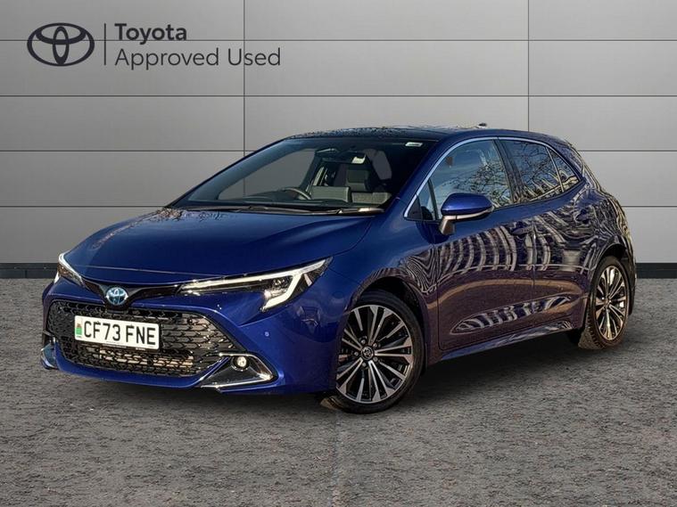 This 2023 Toyota Corolla VVT-h Design is presented with an exceptional service history, having had its last service completed on 27th October 2025 at just 3941 miles, and boasts a very low overall mileage of only 4173 miles. As a Toyota manufacturer approved vehicle, it comes with the reassurance of a 12 month warranty. This Euro 6 compliant model features a smooth 1.8L Petrol Hybrid engine, offering an impressive fuel economy of 61 mpg. The MOT is valid until October 2026, ensuring peace of mind for the road ahead. Inside, you'll find a Skyview Panoramic Roof with a fixed sunroof, heated seats for comfort, and dual-zone automatic air conditioning to maintain the perfect cabin temperature. For convenience, it includes adaptive cruise control with a speed limiter and a wireless charger for your phone.The highlights of this Corolla Design demonstrate its superiority over other vehicles in its class. Its very low mileage for its age, combined with its exceptional fuel economy of 61 mpg and low CO2 emissions, makes it an economical and environmentally conscious choice. The low insurance group further adds to its affordability. The acceleration from 0-62mph in just 9.1 seconds provides a responsive driving experience, while the large boot space offers practicality for everyday needs and longer journeys..