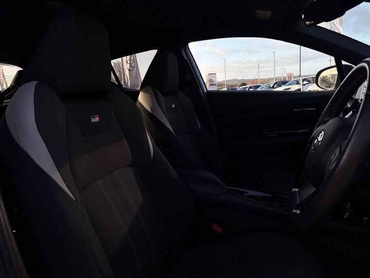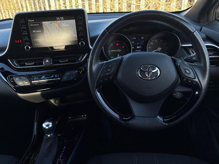 This 2021 Toyota C-HR VVT-h GR SPORT is a Toyota manufacturer approved vehicle, meaning it has passed a rigorous inspection and comes with the reassurance of a 12 month warranty. With only one owner since new and an MOT valid until September 2026, this Euro 6 compliant model offers excellent provenance. It features a 1.8L Petrol Hybrid engine and the GR SPORT trim, boasting Smart Entry and Push Button Start for effortless access and ignition. The Tech Pack enhances convenience and safety with Blind Spot Assistance, front and rear parking sensors, and keyless entry.Driving this C-HR is made more enjoyable with Adaptive LED Headlights that illuminate the road effectively. Stay connected and entertained with Smartphone Integration, supporting both Apple CarPlay and Android Auto. Comfort is assured thanks to the Dual-Zone Automatic Air Conditioning, allowing you to set individual temperatures. This particular model stands out with a highlight fuel economy of 58 mpg, a low insurance group, and low CO2 emissions, indicating it is more economical and cost effective to run than many similar vehicles..