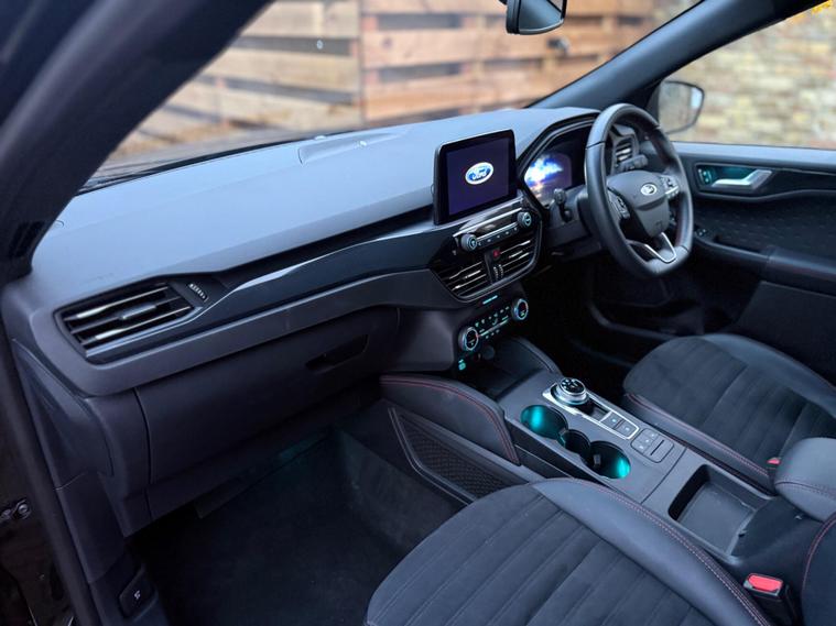 This 2021 Ford Kuga ST-Line offers an exceptional ownership proposition with its single owner and clear vehicle history. Powered by a 2.5 litre petrol plug-in hybrid engine and meeting Euro 6 emissions standards, this model combines efficiency with performance. Notable features include automatic headlights, Ford's Key Free System for keyless entry and start, and front and rear parking sensors for added convenience. Inside, you'll find dual-zone electronic automatic temperature control for personalised comfort and the Ford SYNC3 navigation system, complete with Android Auto and Apple CarPlay integration for seamless connectivity.With a remarkably low mileage of just 35, 500 miles for its age, this Kuga ST-Line stands out from similar vehicles. Its low insurance group rating further enhances its appeal, suggesting lower running costs. This well maintained, one owner vehicle provides a compelling package for anyone seeking a modern, feature rich, and economical SUV..