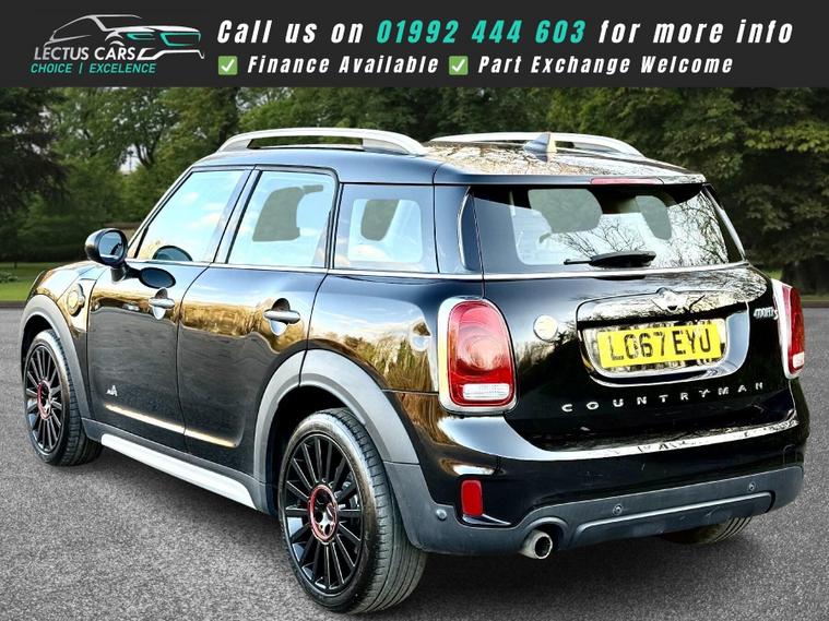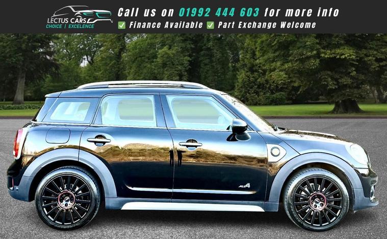 Finished in Midnight Black with Carbon Black Cloth-Leather Combination this 2017 MINI Countryman Cooper SE presents a compelling proposition with its remarkably low mileage of just 57, 252 miles for its age. This four-wheel drive, Euro 6 compliant plug in hybrid model combines a 1.5 litre petrol engine with electric power, offering an efficient and engaging driving experience. It comes with a full service history last serviced in August 2025 and is equipped with the desirable CHILI Pack, which includes essential comfort features such as climate control, LED headlights with cornering lights, keyless entry via the Comfort Access System, and heated seats for both the driver and front passenger. Further enhancing its appeal are the stylish 18 inch Pin Spoke alloy wheels. The front seats are John Cooper Sports heated seats. Satellite Navigation is also provided along with Bluetooth connectivity and a DAB digital radio and cruise control. A 6 month nationwide premium parts & labour warranty provides added peace of mind.The inclusion of the CHILI Pack and Comfort Access System, alongside the LED headlights with cornering lights and heated seats, clearly sets this MINI Countryman Cooper SE apart from other vehicles in its class. These features contribute to a more comfortable, convenient, and sophisticated ownership experience. The four-wheel drive system ensures confident handling in various conditions, while the plug in hybrid technology offers a blend of performance and economy. This well appointed Countryman is ready for its next adventure.See the video in the advert or use this link: https://youtu.be/p0n-agh8sIM?si=zcnPi-0g7KrR-pFW0% Deposit when financing through us.DELIVERY AVAILABLE. The Car Comes With A 6 Month Premium Nationwide Parts And Labour Warranty Finance Available From 10.9 % Apr All Inspections Welcome AA/RAC Px Welcome Viewing By Appointment Only Please Call John On 01992692105 Or 01992692105.