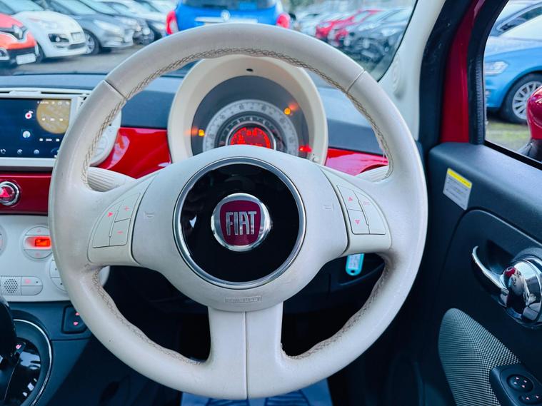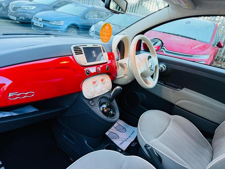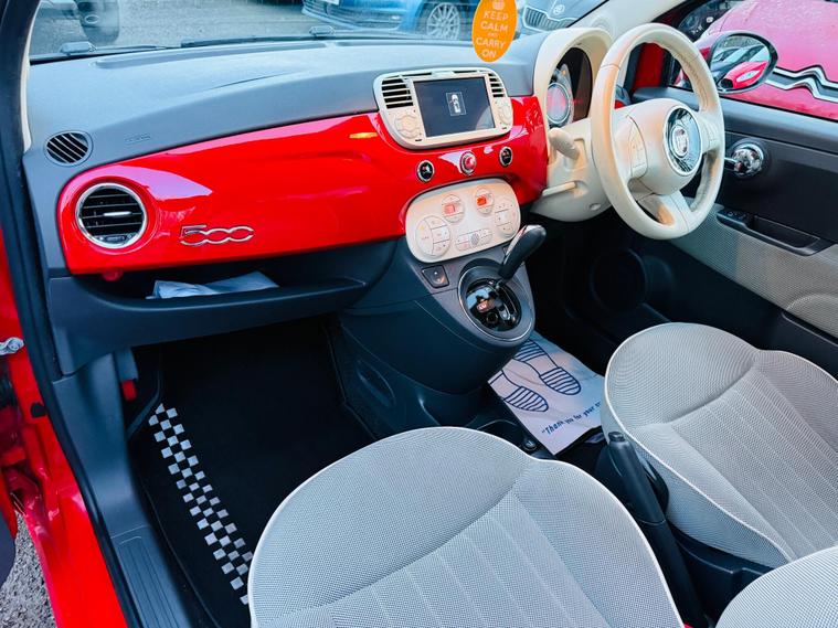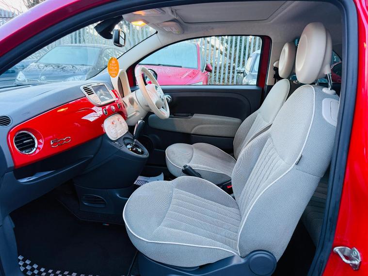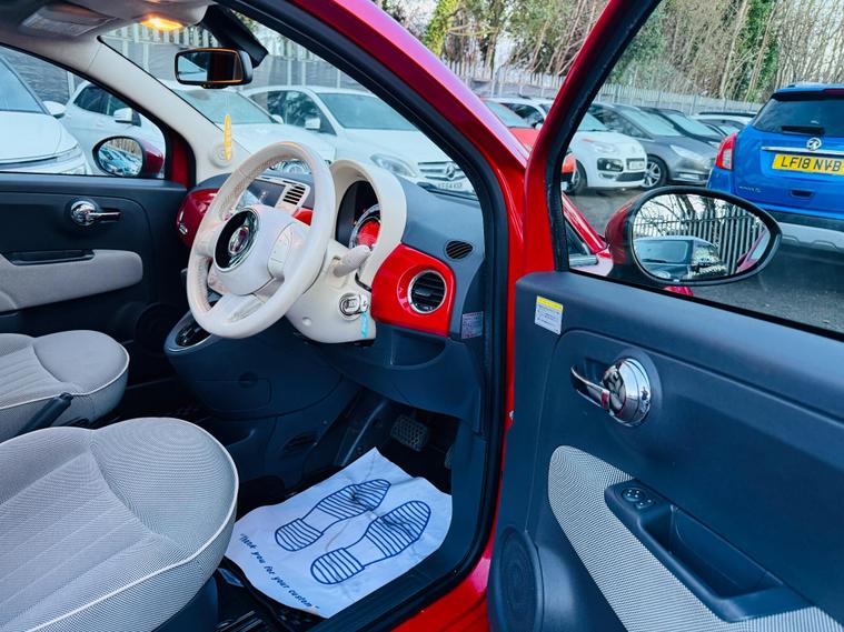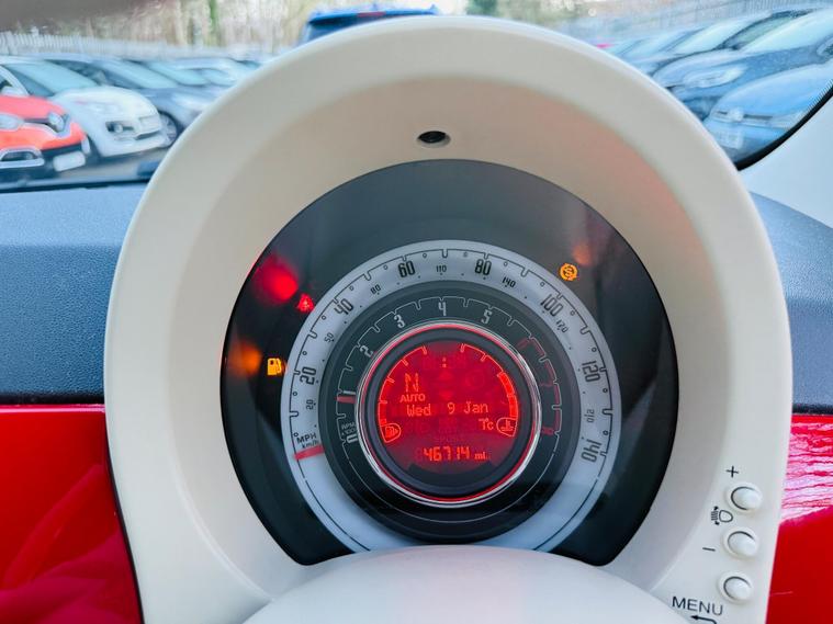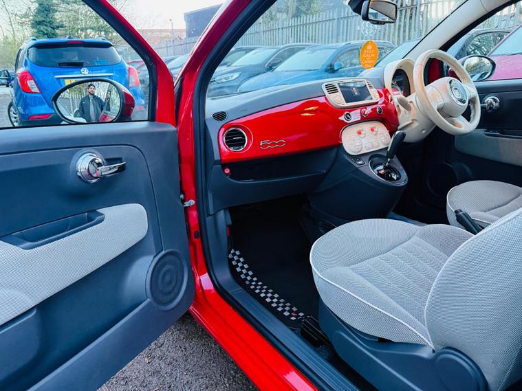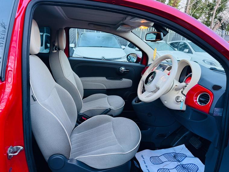 RED, FINANCE AVAILABLE, NAVIGATION SYSTEM, REVERSE CAMERA, APPLE CAR PLAY, ONLY ONE OWNER, START/STOP, ULEZ COMPLIANTWARRANTED AND VARIFIABLE LOW MILEAGE WITH IMPORTED DOCUMENTS.This 2014 Fiat 500 Lounge boasts exceptionally low mileage for its age, having covered just 46, 680 miles. This well maintained example comes with an MOT valid until November 2026, offering peace of mind for the new owner. The Lounge trim level includes desirable features such as Air Conditioning to keep you comfortable, and the Blue&Me Hands Free System with a USB port for seamless connectivity.Experience impressive fuel economy with this Fiat 500, achieving a remarkable 72 miles per gallon, which is significantly better than many other vehicles in its class. Its low CO2 emissions further contribute to its appeal as an economical and environmentally conscious choice. The Lounge variant also features a Fixed Glass Roof with a Sunblind, allowing you to enjoy an open and airy cabin experience..