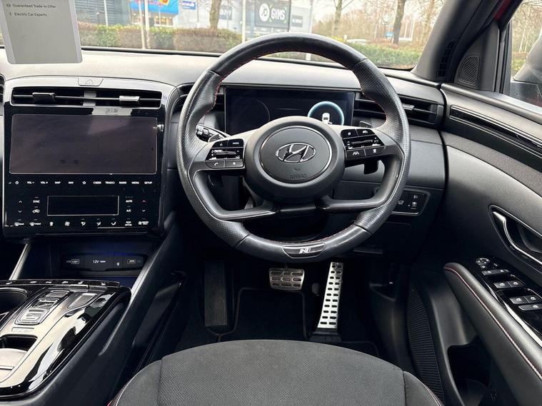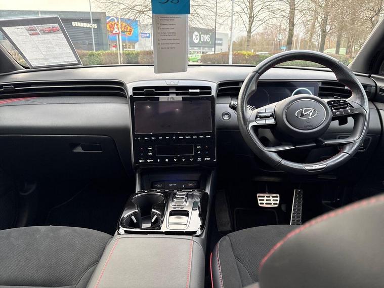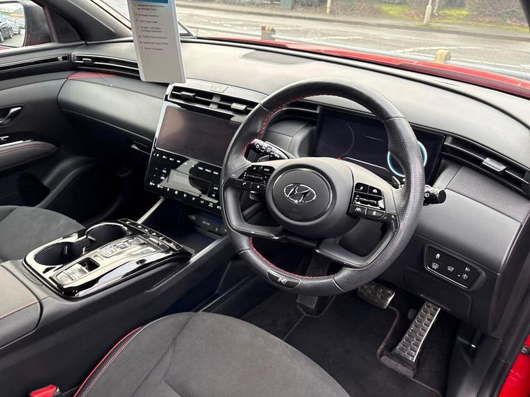 This 2023 Hyundai TUCSON h T-GDi N Line S presents an exceptional opportunity with its remarkably low mileage of just 8438 miles. This Euro 6 compliant 1.6 litre petrol hybrid is presented in the sporty N Line S trim, offering a refined driving experience. Inside, you'll find comfort and convenience with three zone climate control and heated front seats, ensuring a pleasant journey for all occupants. The full LED headlights provide excellent visibility, while smart adaptive cruise control with stop and go functionality makes motorway driving effortless. Connectivity is seamless with Android Auto integration, keeping your essential apps accessible.The performance of this TUCSON is equally impressive, boasting a swift 0-62mph acceleration time of 8.0 seconds, demonstrating its dynamic capability. This model also benefits from a low insurance group, making it an economical choice for many drivers. Furthermore, the generous boot space provides ample room for luggage, shopping, or sports equipment, highlighting its practicality for everyday life and adventures. These combined attributes indicate that this Hyundai TUCSON offers a superior package compared to other vehicles in its class..