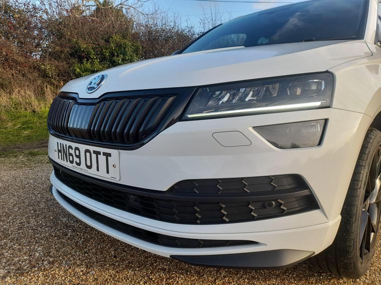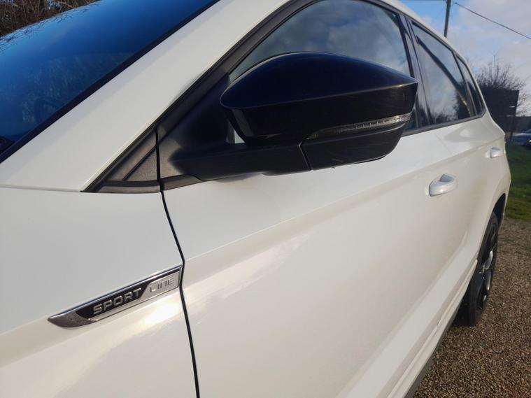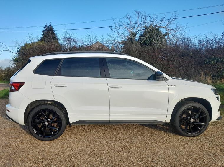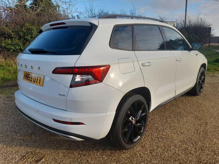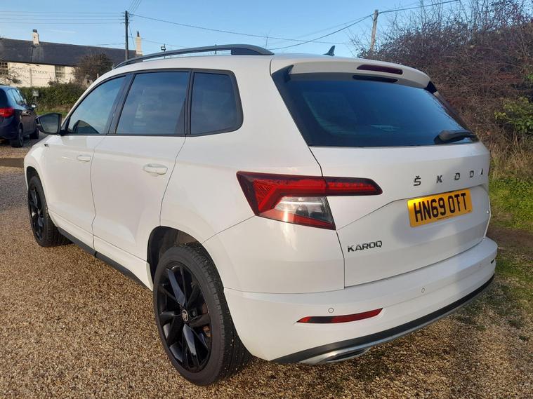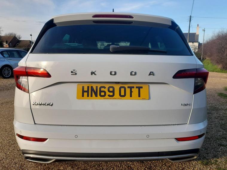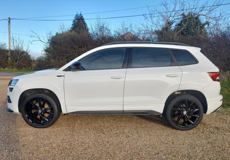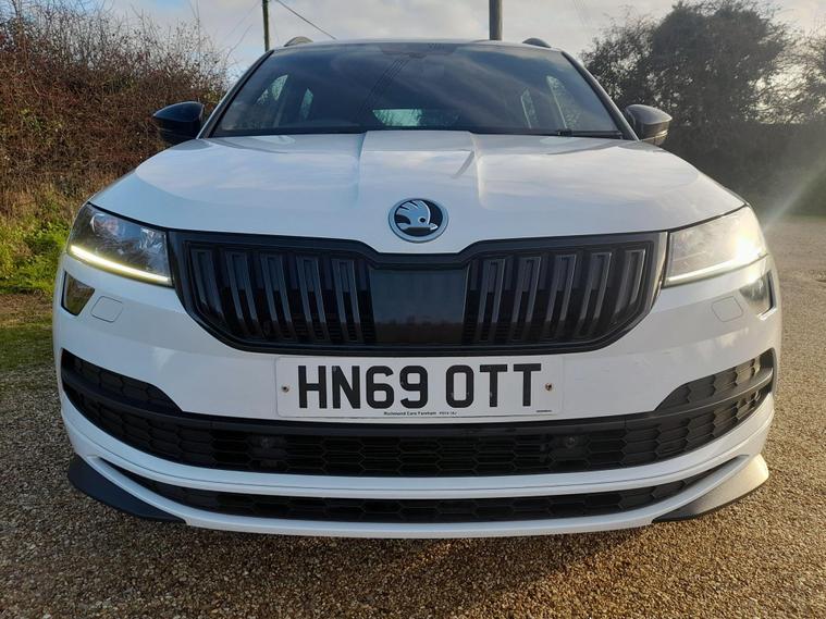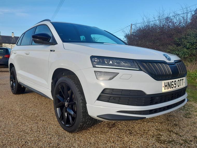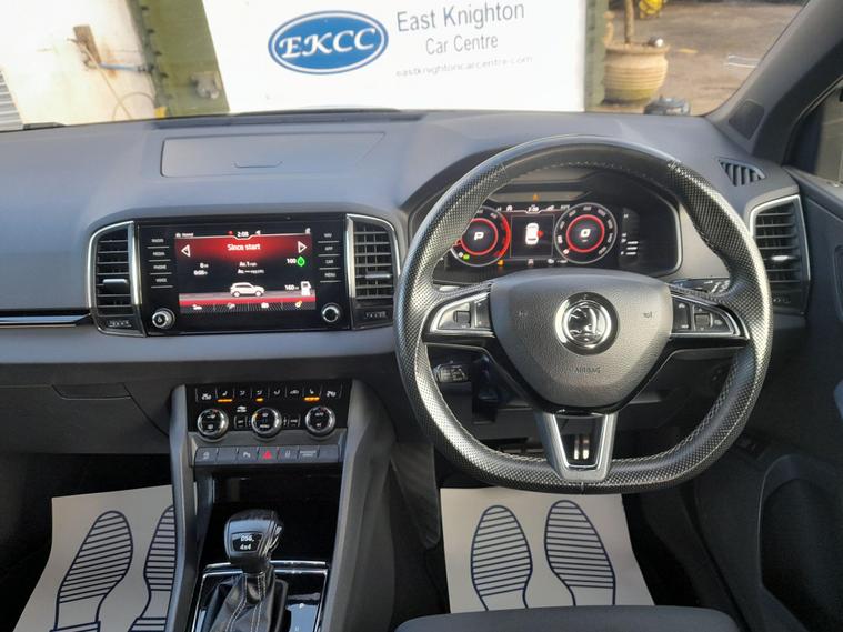 This 2019 Skoda Karoq TDI SportLine boasts a clear vehicle history, offering you peace of mind. This stylish SUV features a powerful 2.0 litre diesel engine paired with four wheel drive, ensuring capable performance in various conditions. Its Euro 6 emission class contributes to lower environmental impact, and the SportLine trim enhances its already impressive design. You'll appreciate the convenience of Full LED Headlights with AFS and LED Daytime Running Lights, a Rear View Camera for easier parking, and the modern entertainment system with DAB Digital Radio and Bluetooth connectivity. The Light and Rain Sensor automatically adjusts the headlights and wipers, while the auto dimming rear view mirror reduces glare. For added comfort, the front seats are heated.The Skoda Karoq TDI SportLine offers a compelling package with several key advantages. Its acceleration from 0 to 60mph in just 7.2 seconds demonstrates its brisk performance, outperforming many vehicles in its class. You'll also benefit from a large boot space, making it ideal for families or those who need ample storage. Furthermore, its low CO2 emissions are a significant plus, indicating greater fuel efficiency and a reduced environmental footprint. This vehicle also sits in a low insurance group, which can help to keep your running costs down.NEW ARRIVAL BEING PREPARED! ANOTHER TOP OF THE RANGE MODEL LOCALLY OWNED! WILL BE FRESHLY SERVICED PRIOR TO SALE! +++LOOKING TO FINANCE YOUR PURCHASE? JUST ASK US FOR A QUOTE TODAY+++.