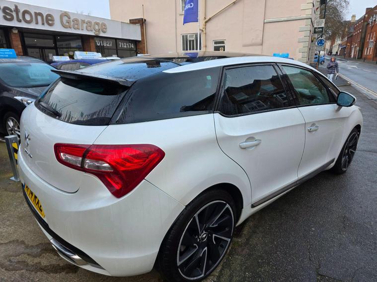 3 MONTHS WARRANTY & FIRST 3 MONTHS OF OWNERSHIP INCLUDES NATIONAL BREAKDOWN BASED ON INTERNET PRICE. SUPERB EXAMPLE. This car is prepared to a very high standard by our own workshop on Abeles Way to include a Full Service & New MOT. Take a look at our customer reviews!This 2014 Citroen DS5 h e-HDi DSport offers a unique blend of advanced technology and refined driving. Featuring a powerful 2.0L Diesel Hybrid engine and Four Wheel Drive, this model ensures a capable and efficient performance. The DSport trim level comes equipped with a Colour Head Up Display, a Connecting Box with Bluetooth for seamless connectivity, and automatic digital dual zone climate control for personalised comfort. Additionally, Xenon dual function directional headlights provide excellent visibility, while rear parking sensors assist with manoeuvring.The spacious boot offers ample room for luggage or shopping, making it a practical choice for families and individuals alike. The inclusion of features such as the Head Up Display and Bluetooth system demonstrates a commitment to driver convenience and modern technology, setting this DS5 apart from other vehicles in its class. This Citroen DS5 is designed to provide a sophisticated and comfortable driving experience..