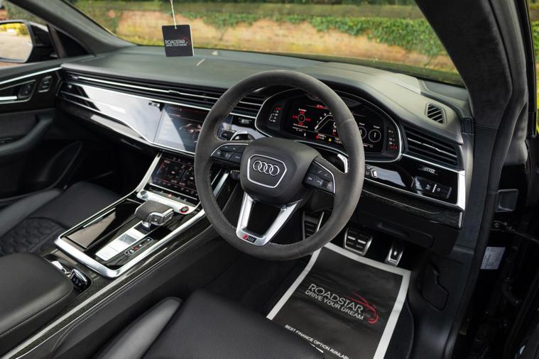 THIS 2023 AUDI RSQ8 TFSI V8 VORSPRUNG IS A REMARKABLE EXAMPLE OF PERFORMANCE AND LUXURY. POWERED BY A POTENT 4.0 LITRE PETROL ENGINE AND FEATURING A SOPHISTICATED FOUR WHEEL DRIVE SYSTEM, THIS EURO 6 COMPLIANT VEHICLE OFFERS AN EXHILARATING 0-62MPH ACCELERATION IN JUST 3.8 SECONDS. THE VORSPRUNG TRIM LEVEL ENSURES A WEALTH OF ADVANCED TECHNOLOGY, INCLUDING ADAPTIVE CRUISE ASSIST FOR EFFORTLESS LONG JOURNEYS, A COMPREHENSIVE CITY ASSIST PACK WITH BLIND SPOT ASSISTANCE, AND A USER FRIENDLY BLUETOOTH INTERFACE.FURTHER ENHANCING YOUR DRIVING EXPERIENCE, THE RSQ8 COMES EQUIPPED WITH PARK ASSIST AND PARKING AID PLUS, MAKING MANOEUVRING IN TIGHT SPACES A BREEZE THANKS TO FRONT AND REAR PARKING SENSORS. THE AUDI SIDE ASSIST SYSTEM PROVIDES AN EXTRA LAYER OF SAFETY BY MONITORING YOUR BLIND SPOTS. BEYOND ITS IMPRESSIVE PERFORMANCE AND SAFETY FEATURES, THIS MODEL BOASTS A LARGE BOOT SPACE, OFFERING AMPLE PRACTICALITY FOR ALL YOUR NEEDS. THE SUBSTANTIAL 3500 KG TOWING WEIGHT ALSO HIGHLIGHTS ITS VERSATILITY FOR CARRYING OR TOWING HEAVIER LOADS, SETTING IT APART FROM MANY OTHER VEHICLES IN ITS CLASS..