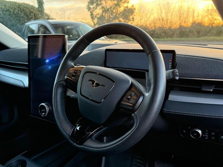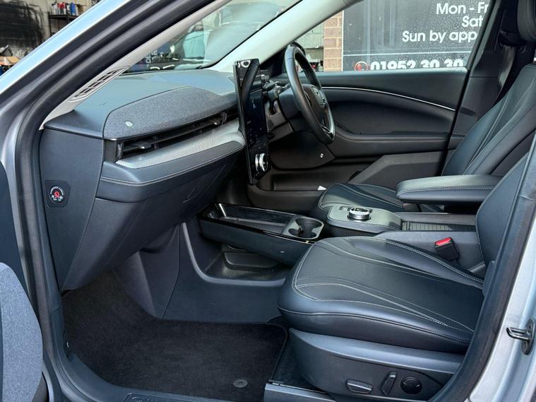 Boasting the desireable fitted option of Tech Pack Plus, this is an exceptionally low mileage 2022 Ford Mustang Mach E Extended Range presents a remarkable opportunity. As an electric vehicle, it offers a substantial battery total capacity of 99 kWh, providing a maximum range of 379 miles when new. This impressive vehicle comes with a 6 month warranty and a 12 month MOT provided on purchase, alongside a full dealership service history, assuring you of its excellent provenance. Notable features include the Tech Pack Plus, which encompasses an opening panoramic sunroof, a 360 degree camera for effortless parking assistance, and a premium branded sound system. Comfort is further enhanced by dual zone electronic automatic temperature control for air conditioning and a heated steering wheel. We sell with a 6 months Warrantywise Electric car specific Warranty. Fabulous finance deals are available with low deposit and PCP. The Mustang Mach E Extended Range stands out with its exceptional range capabilities, indicating it is better equipped for longer journeys than many comparable electric vehicles. Its fastest public charging time from empty to 80% is a swift 51 minutes, minimising downtime. For home charging, a full charge takes approximately 14 hours and 36 minutes using a 7kW charger. The B+O premium sound system, featuring 10 speakers and a dashboard sound bar, delivers an immersive audio experience. With only 18000 miles on the clock, this electric Ford represents a compelling blend of advanced technology, impressive performance, and excellent value..