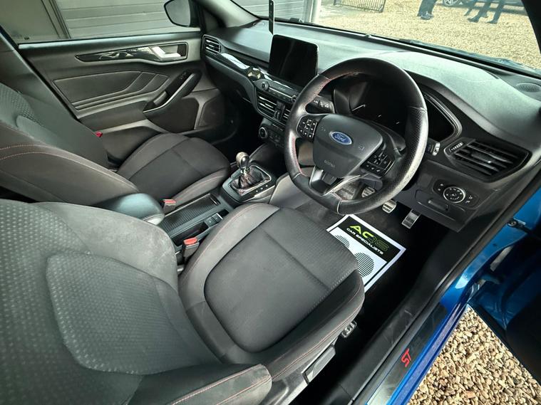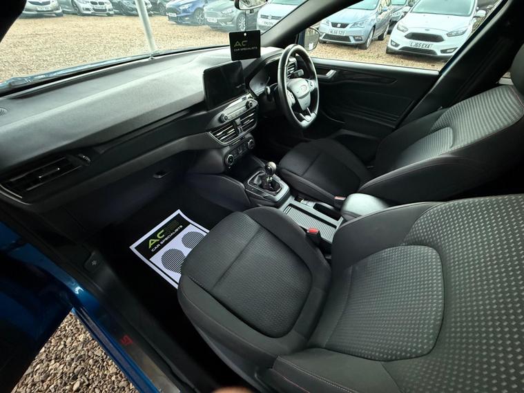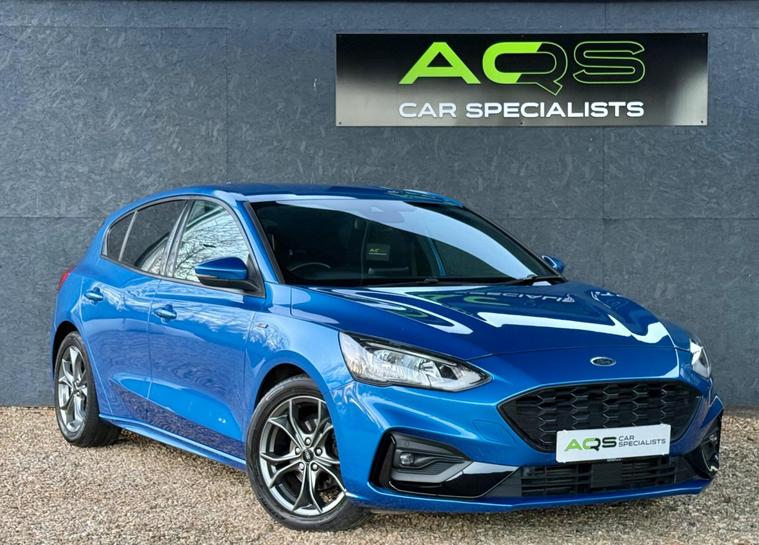 Here at AQS Car Specialist we take pride in being one of the few highly rated dealers for our customer service from Autotrader working closely together so we can go the extra mile to make sure you are getting the best service out there. All vehicles undergo a full visual and Mechanical health inspection, driven and tested. All essential work carried out with no expense spared. We offer an extended nation wide warranty with the option to extend up to 36 months, giving our customers full peace of mind and security when purchasing a car from AQS car specialists.Any inspection welcome, Test drive welcome, Part exchanges welcome. All dealer facilities available on site. Here at AQS Car Specialist we are delighted to offer this fantastic looking example of a Ford Focus 1.0T EcoBoost ST-Line. Finished in a stunning and unique Blue with a contrasting Black cloth interior with Red stitching alongside 17 inch alloys. Recently serviced and complimented by a partial history (3 Stamps) as well as a fresh 12 months MOT. In excellent condition both inside and out, this is a great example of a Focus. These Focus's are renown for their sleek design, comfortable cabin, being low maintenance and reliable. This particular example benefits from being fitted with some handy features which include, Air Conditioning, Cruise Control, Sat Nav, Bluetooth Connectivity, DAB Radio, USB Input, Auto Headlights, Rain Sensors, Keyless Go, Front and Rear Parking Sensors with Visual Aid, Lane Keeping Assist and Lane Departure Warning, Pre Collision Assist, Keyless Start, Switchable Driver Modes, Hill Start Assist, Heated Side Mirrors, MultiFunctional Steering Wheel, Tyre Pressure Monitoring System and the must have ST interior and exterior Styling pack from factory..