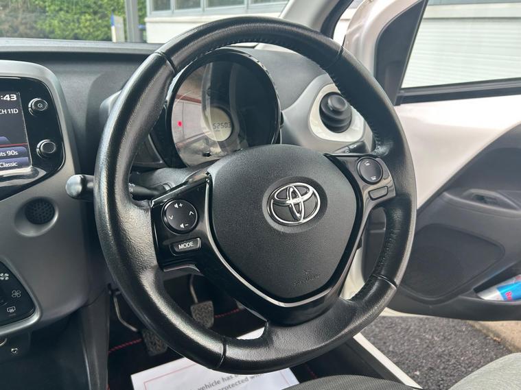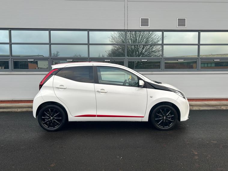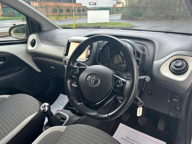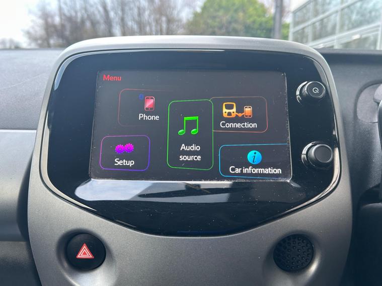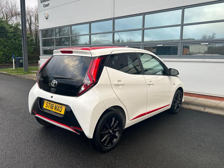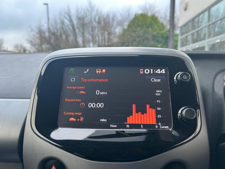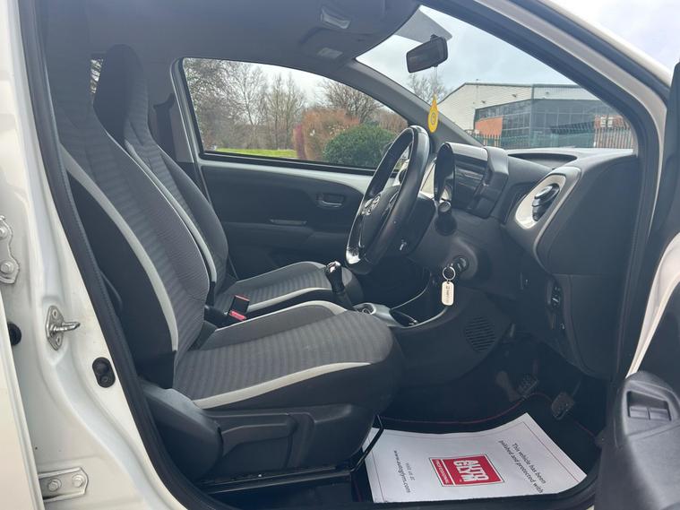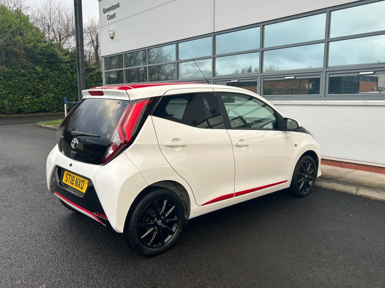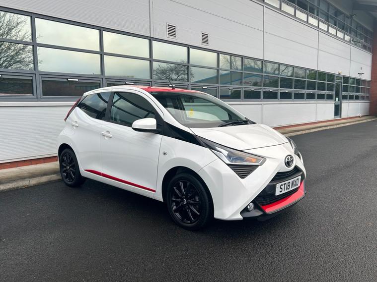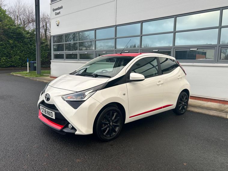 This 2018 Toyota AYGO VVT-i x-press is a clear vehicle history example, offering peace of mind. This stylish hatchback features a 1.0L petrol engine and meets Euro 6 emissions standards. Inside, you'll find the convenient x-nav integrated navigation unit, auto headlights that switch on automatically, and a reversing camera to aid with parking. The cabin is kept comfortable with climate control, and the 7in x-touch multimedia system includes Bluetooth connectivity for your devices.The AYGO x-press stands out with its impressive fuel economy, achieving a highlight of 69 mpg, which indicates it is more economical than many similar vehicles. Furthermore, its low insurance group and low CO2 emissions highlight how this car can be more affordable to run and own compared to other cars in its class..