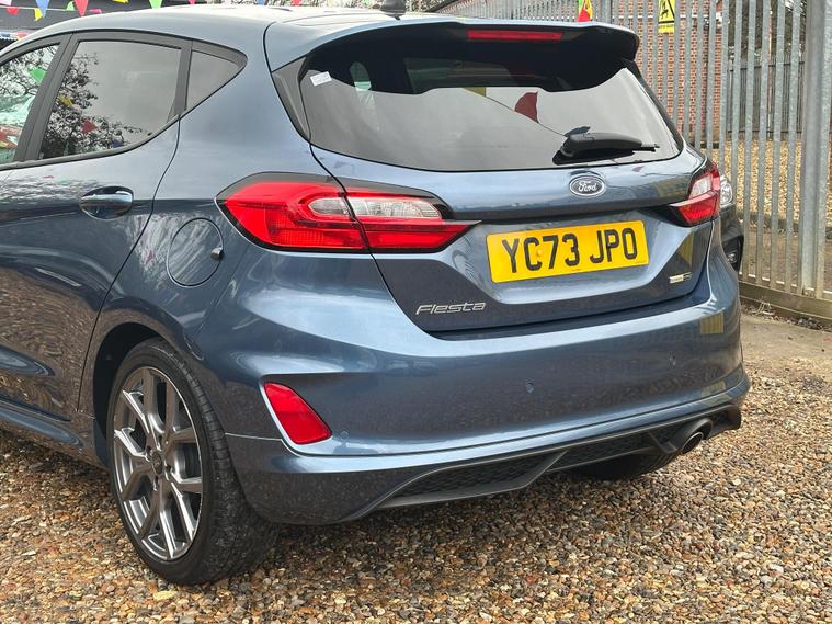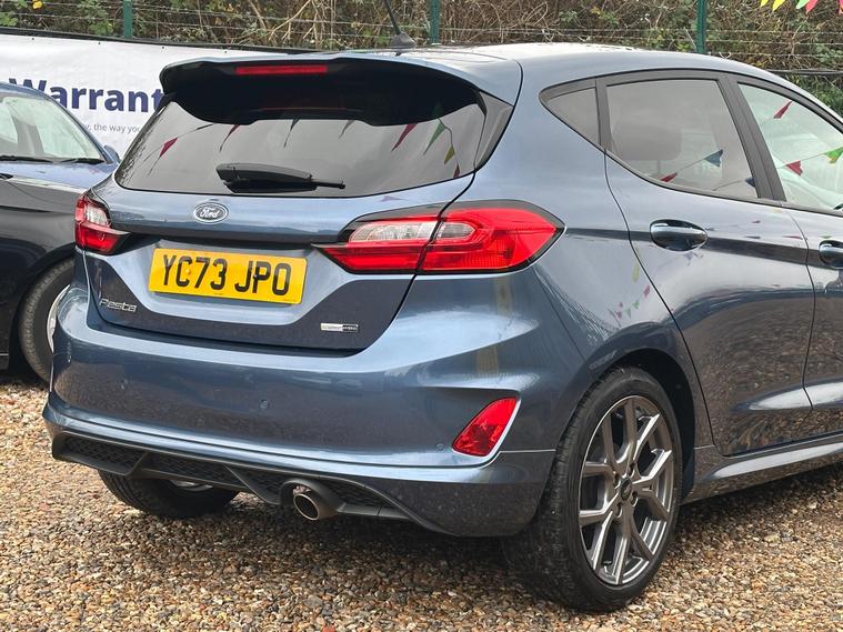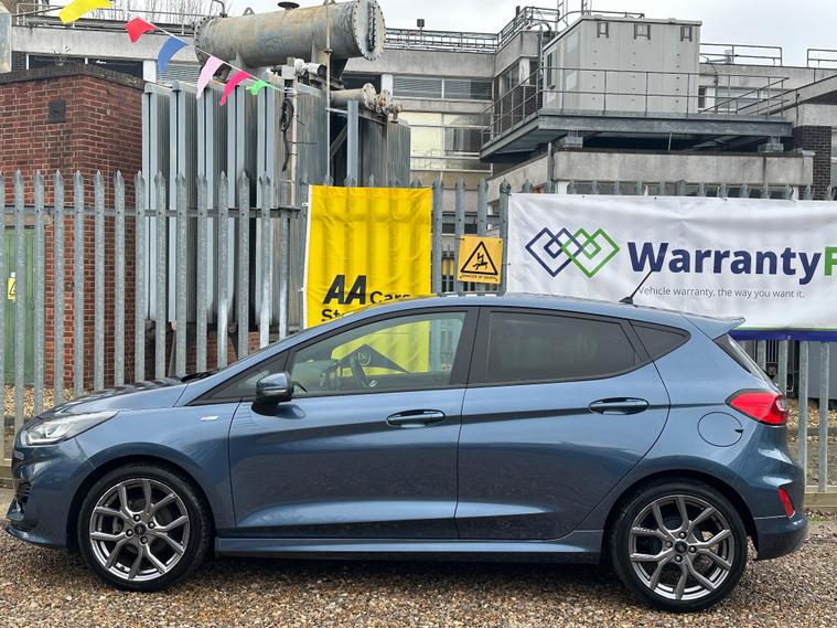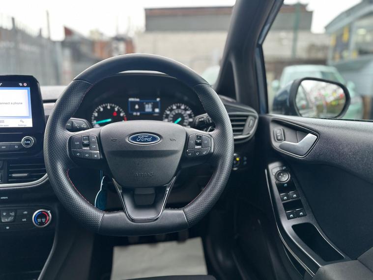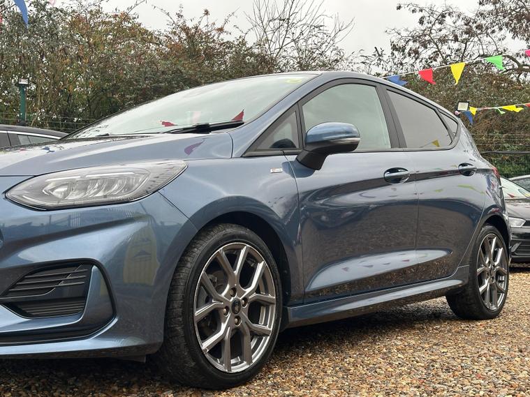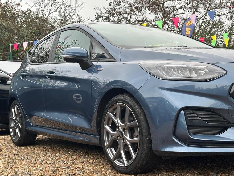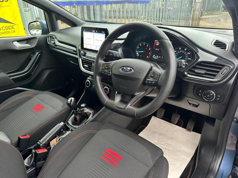 ULTIMATE MOTORS IS DELIGHTED TO OFFER YOU THIS AMAZING FORD FIESTA 1.0T ECOBOOST MHEV ST-LINE 5DR IN BLUE COLOUR AND COMPLEMENTED WITH 17IN 5 SPOKE ROCK METALLIC DESIGN ALLOY WHEELS. THIS VEHICLE HAS A HUGE SPECIFCATION WHICH INCLUDES THE FOLLOWING; CARPLAY FOR IPHONE AND ANDROUD AUTOS, REAR PARKING DISTNACE CONTROL SENSORS, BLUETOOTH CONNECTIVITY FOR PHONE AND MEDIA, DAB-FM/AM RADIO, LANE DEPARTURE WARNING SYSTEM, CRUIS CONTROL WITH SPEED LIMITER, MANUAL AIR CONDITIONING, 4.2 IN COLOUR TOUCHSCREEN DISPLAY, KEYLESS START ENGINE GO WITH STAR AND STOP PUSH BUTTON, LED PROJECTOR HEADLIGHTS WITH LED DAYTIME RUNNING LIGHTS, TYRE PRESSURE WARNING SYSTEM. THIS VEHICLE IS ULEZ EXEMPT. WE ARE OFFERING NATIONWIDE DELIVERY ON ALL VEHICLE (PLEASE GET IN TOUCH DIRECTLY FOR DETAILS). WE CAN ALSO CONDUCT VIRTUAL VIEWINGS AND ACCOMMODATE ANY REQUESTS YOU MAY HAVE. ALL OUR ADVERTISED STOCK IS TEST-DRIVEN, INSPECTED BY OUR MECHANIC TO MAKE SURE OUR CUSTOMERS DRIVE AWAY WITH THE BEST QUALITY CARS. WE CAN PROVIDE A VIDEO WALK AROUND THIS VEHICLE UPON REQUEST.ALL OF OUR VEHICLES ARE SUPPLIED WITH A 3 MONTHS WARRANTY WITH EXTENDED OPTION. 12 MONTHS FREE AA BREAKDOWN COVER. FINANCE AVAILABLE..
