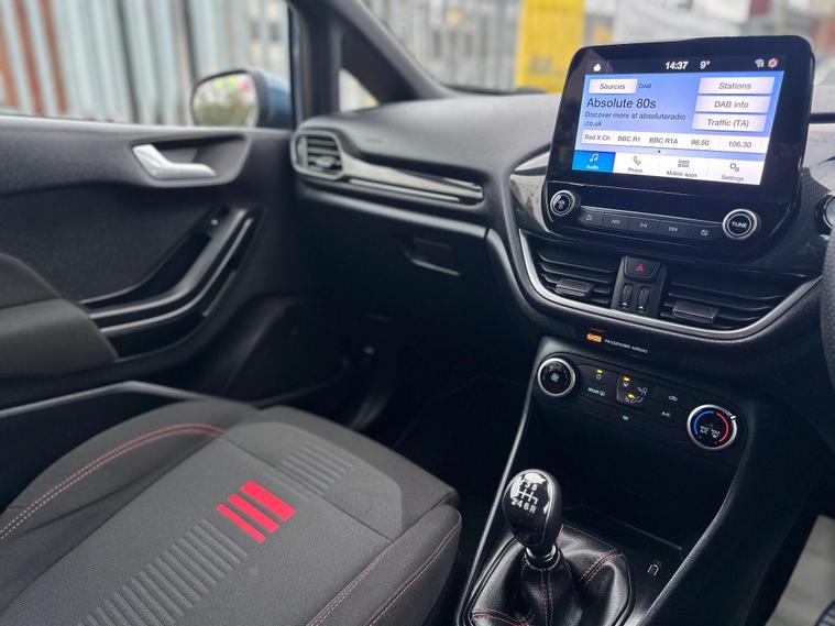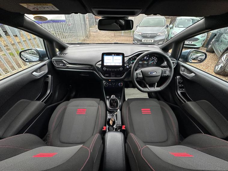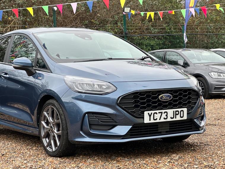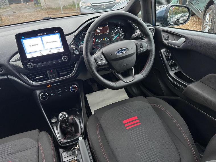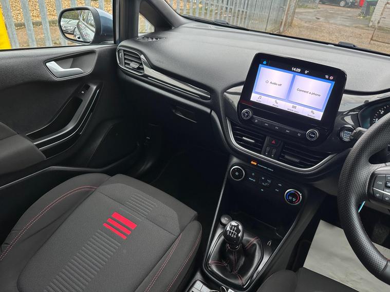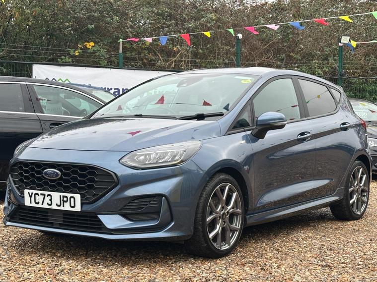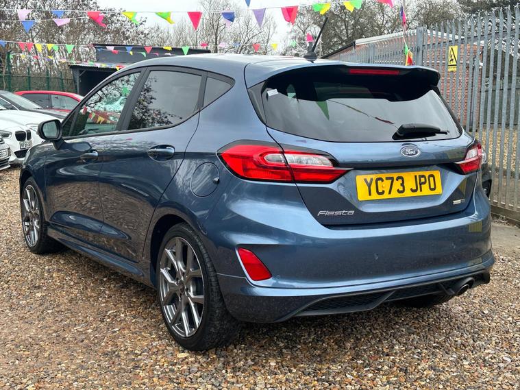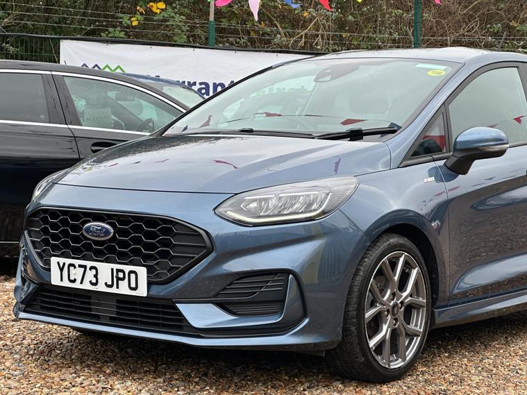 ULTIMATE MOTORS IS DELIGHTED TO OFFER YOU THIS AMAZING FORD FIESTA 1.0T ECOBOOST MHEV ST-LINE 5DR IN BLUE COLOUR AND COMPLEMENTED WITH 17IN 5 SPOKE ROCK METALLIC DESIGN ALLOY WHEELS. THIS VEHICLE HAS A HUGE SPECIFCATION WHICH INCLUDES THE FOLLOWING; CARPLAY FOR IPHONE AND ANDROUD AUTOS, REAR PARKING DISTNACE CONTROL SENSORS, BLUETOOTH CONNECTIVITY FOR PHONE AND MEDIA, DAB-FM/AM RADIO, LANE DEPARTURE WARNING SYSTEM, CRUIS CONTROL WITH SPEED LIMITER, MANUAL AIR CONDITIONING, 4.2 IN COLOUR TOUCHSCREEN DISPLAY, KEYLESS START ENGINE GO WITH STAR AND STOP PUSH BUTTON, LED PROJECTOR HEADLIGHTS WITH LED DAYTIME RUNNING LIGHTS, TYRE PRESSURE WARNING SYSTEM. THIS VEHICLE IS ULEZ EXEMPT. WE ARE OFFERING NATIONWIDE DELIVERY ON ALL VEHICLE (PLEASE GET IN TOUCH DIRECTLY FOR DETAILS). WE CAN ALSO CONDUCT VIRTUAL VIEWINGS AND ACCOMMODATE ANY REQUESTS YOU MAY HAVE. ALL OUR ADVERTISED STOCK IS TEST-DRIVEN, INSPECTED BY OUR MECHANIC TO MAKE SURE OUR CUSTOMERS DRIVE AWAY WITH THE BEST QUALITY CARS. WE CAN PROVIDE A VIDEO WALK AROUND THIS VEHICLE UPON REQUEST.ALL OF OUR VEHICLES ARE SUPPLIED WITH A 3 MONTHS WARRANTY WITH EXTENDED OPTION. 12 MONTHS FREE AA BREAKDOWN COVER. FINANCE AVAILABLE..