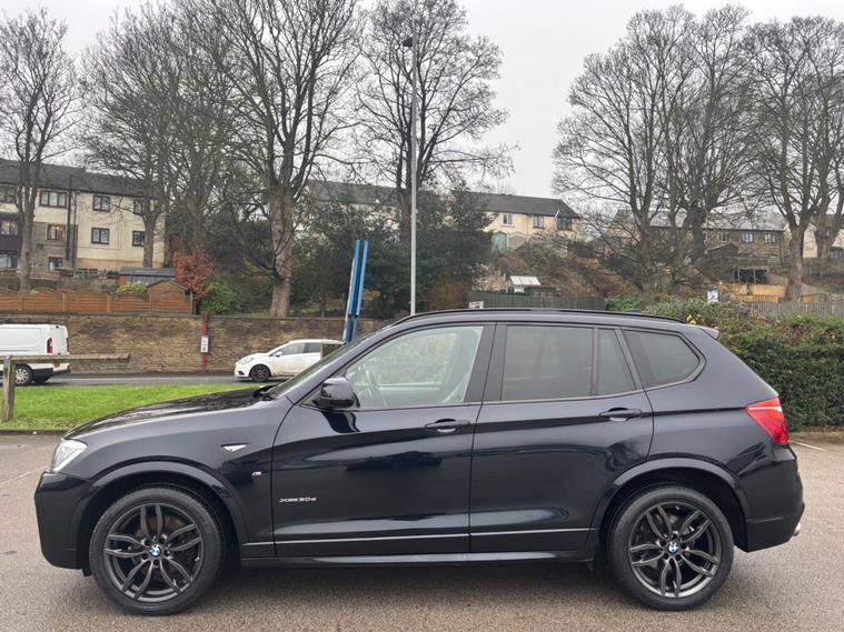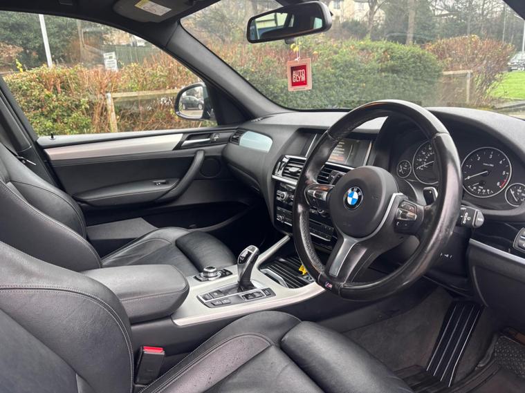 WE ARE PLEASED TO OFFER THIS HIGHLY DESIRABLE HIGH SPECIFICATION HIGHLY MAINTAINED RARE LOW OWNERSHIP FOUR WHEEL DRIVE EURO SIX BMW X3 3.0 30d M SPORT AUTOMATIC FIVE DOOR + FINISHED IN THE BEST COLOUR OF CARBON BLACK METALLIC PAINTWORK AND IS COMPLEMENTED WITH A FULL BLACK NEVADA LEATHER UPHOLSTERY + ONLY 82, 644 MILES HAS BEEN COVERED IN TOTAL BY TWO OWNERS + LAST OWNER SINCE EIGHT MONTHS OLD AND IS BACKED WITH AN EXCELLENT SERVICE HISTORY WHICH IS COMPRISED OF INVOICES AND RECEIPTS + JUST BEEN SERVICED + THE MOT IS TILL THE 29TH OF DECEMBER 2026 + OUTSTANDING CONDITION THROUGHOUT AND DRIVES SUPERB + 258 BHP MODEL + FULL M SPORT SPECIFICATION WHICH INCLUDES SATELLITE NAVIGATION / DAB TUNER / HEATED FRONT SEATS / 19'' LIGHT M DOUBLE SPOKE ALLOY WHEELS FINISHED IN ANTHRACITE AND IS FITTED WITH BRAND NEW GOOD YEAR TYRES ALL ROUND / FULL ELECTRIC PACK WITH POWER FOLD DOOR MIRRORS / CRUISE CONTROL / SUN PROTECTION GLASS / MULTI FUNCTION LEATHER STEERING WHEEL / PARKING DISTANCE CONTROL FRONT AND REAR / POWER TAILGATE / ENHANCED BLUETOOTH HANDS FREE PHONE PACK / AMBIENT INTERIOR LIGHTING PLUS MUCH MORE + HANDBOOK PACK + 2 X KEYS + ANY TRIAL OR INSPECTION IS WELCOMED + HPI CLEAR WITH CERTIFICATE + SIX MONTHS NATIONWIDE WARRANTY IS INCLUDED + VIEWING IS ESSENTIAL TO APPRECIATE THIS MUCH SOUGHT AFTER EXAMPLE OF THIS MUCH SOUGHT AFTER SUV. We have been established in Baildon for over 20 years. All our vehicles are fully inspected, prepared and valeted. We are finance specialists. Part exchange is welcome. All major credit and debits accepted. Open 7 days. Our postcode is BD177EX..