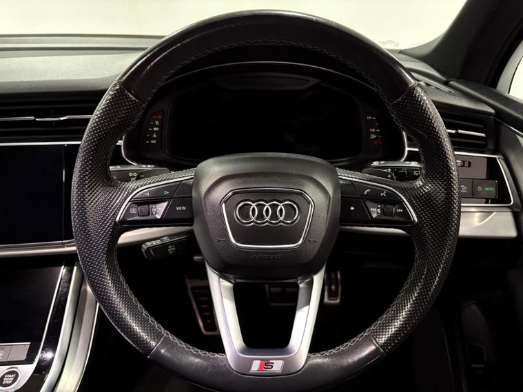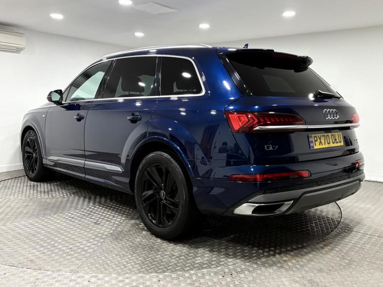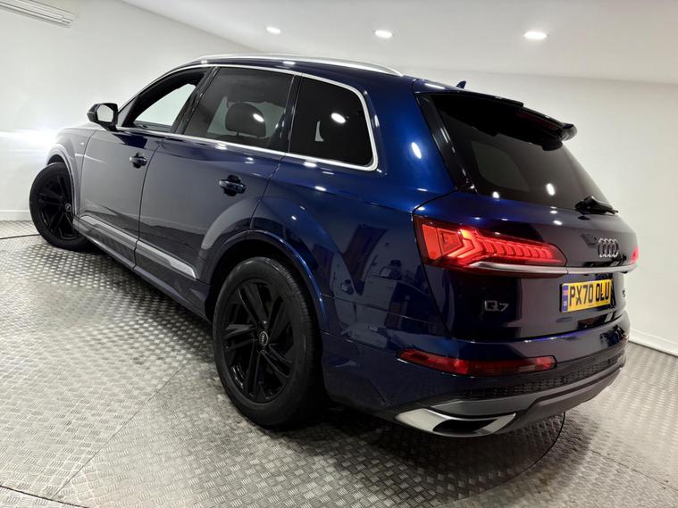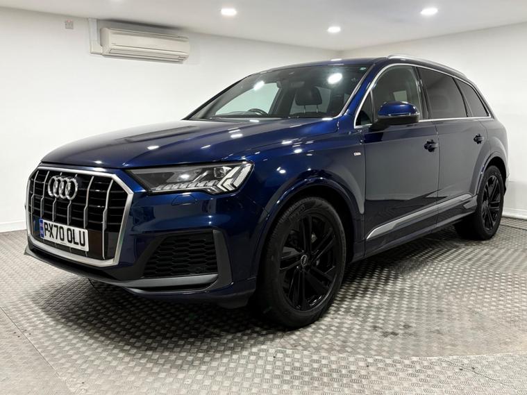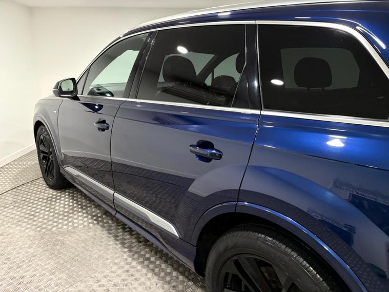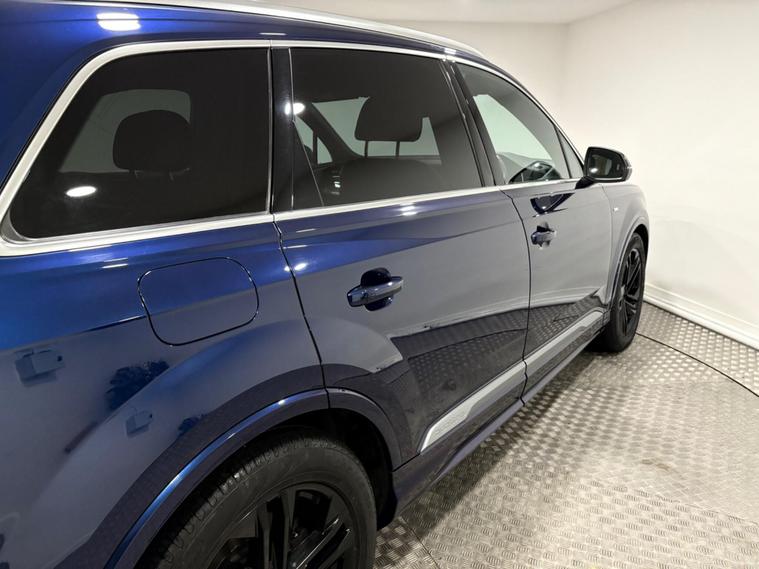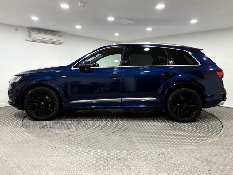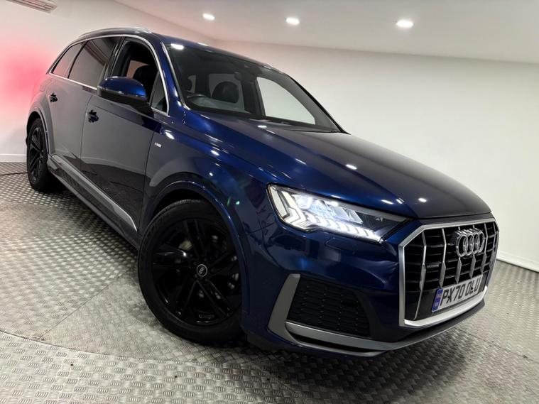 This Audi Q7 is car that has previously been sold and serviced by ourselves, finished in metallic Navarra blue with black leather interior, only 2 owners from new and supplied with 2 keys. The S line trim level enhances its sporty appeal, and you'll appreciate the generous boot space, perfect for family adventures or everyday practicality. Some features include 20 inch black alloy wheels, Audi virtual cockpit, front and rear parking sensors with reversing camera, electric front seats and more.Experience effortless driving with the Audi Q7's impressive acceleration, reaching 0 to 62mph in just 6.5 seconds, a testament to its potent 3.0L diesel engine. This vehicle also benefits from a low insurance group, making it an economical choice. For enhanced convenience and safety, it includes sophisticated Audi Matrix LED headlights with dynamic indicators, and the Audi Smartphone Interface for seamless integration of your Android Auto or Apple CarPlay devices. Stay connected and powered up with the Audi Phone Box offering Bluetooth and wireless phone charging, while the heated front seats ensure comfort during colder journeys. Furthermore, this Q7 is capable of towing up to 3500 kg, providing versatility for a range of needs.SpecificationsThe data displayed above details the usual specification of the most recent model of this vehicle. It is not the exact data for the actual vehicle being offered for sale and data for older models may vary slightly. We recommend you check the vehicle details with your sales advisor before you buy..
