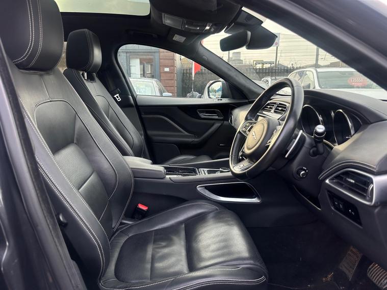 This 2019 Jaguar F-PACE D180 R-Sport offers a compelling blend of performance and practicality. Featuring a robust 2.0L diesel engine and Four Wheel Drive, this Euro 6 compliant model is equipped for a variety of conditions. The R-Sport trim enhances its appeal with notable features such as Xenon headlights with LED signature, front parking aid with parking assistance, and Bluetooth telephone connectivity. Inside, you'll appreciate the comfort of heated front seats and the convenience of 2-zone climate control, ensuring a pleasant journey for all occupants.The F-PACE D180 R-Sport boasts an impressive towing weight of 2400 kg, making it a versatile choice for those needing to transport trailers or caravans. Its acceleration from 0-60mph in just 8.4 seconds demonstrates its responsive performance, setting it apart from many similar vehicles. Furthermore, the generous boot space provides ample room for luggage, shopping, or equipment, highlighting its suitability for both everyday use and longer adventures..