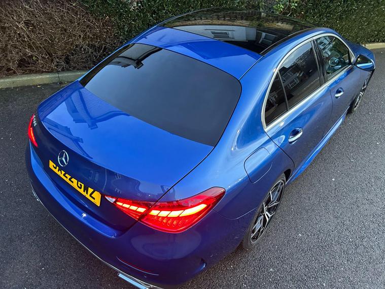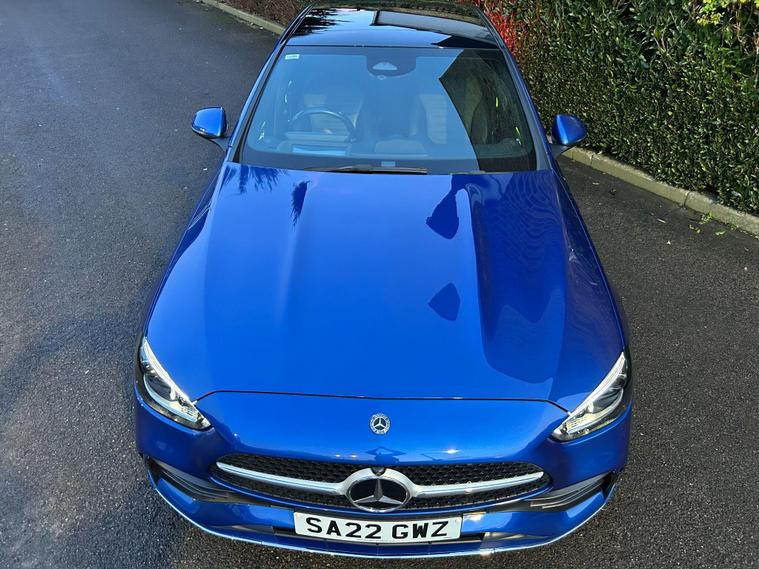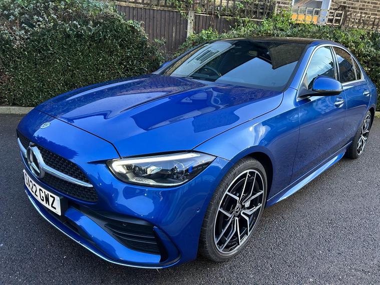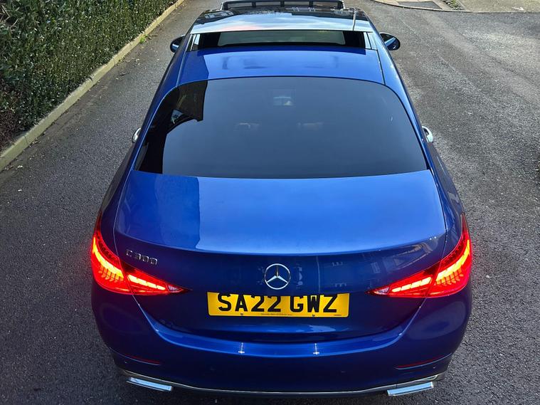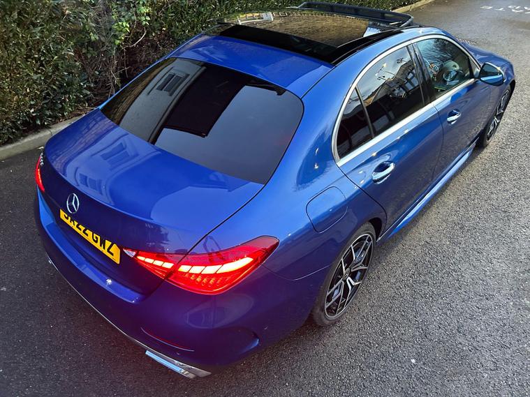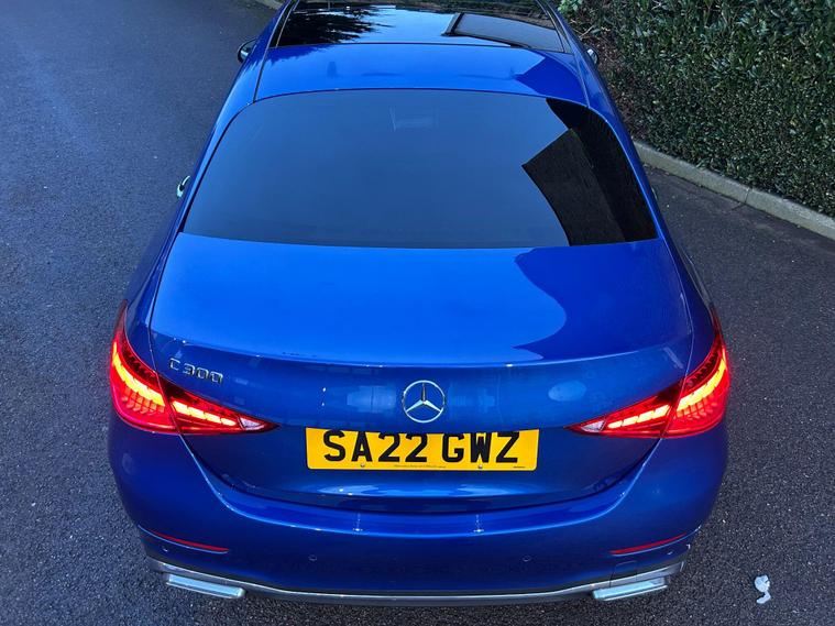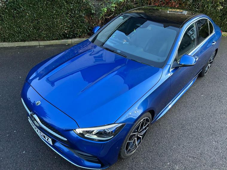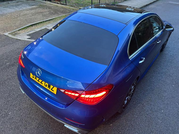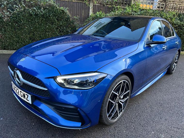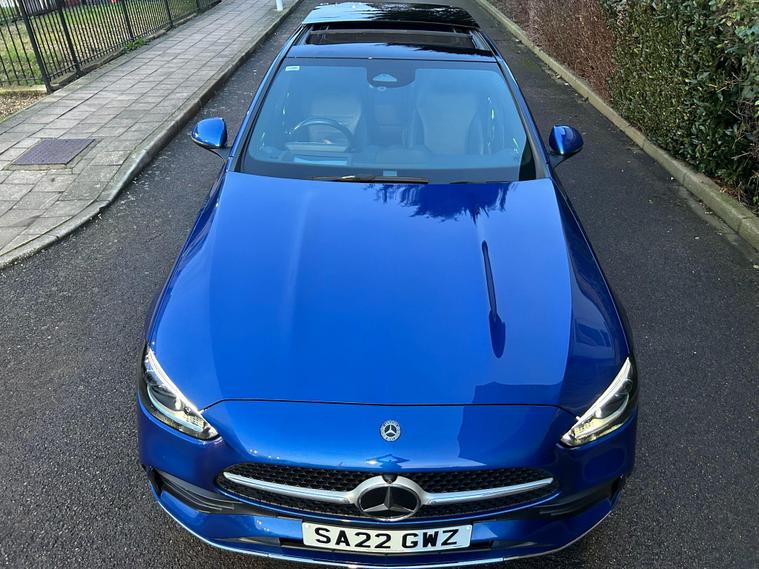 VAT QUALIFYING! PANORAMIC SUNROOF! This 2022 Mercedes Benz C Class C300h AMG Line (Premium Plus) has had only one owner from new, offering a pristine example of this sophisticated vehicle. It features a powerful 2.0L Petrol Hybrid engine, meeting Euro 6 emission standards. Notable features include advanced Digital Light headlamps, a convenient Head Up Display, and Active Blind Spot Assist for enhanced safety. The KEYLESS GO system provides effortless access, while the heated front seats ensure comfort in all conditions.The C300h AMG Line (Premium Plus) variant stands out with its impressive performance, achieving 0-62mph in just 6.0 seconds. This swift acceleration, combined with the hybrid technology, demonstrates a superior driving experience compared to many other vehicles in its class. The AMG Line trim further enhances its sporty appeal and dynamic handling, making this Mercedes Benz a compelling choice for those seeking both efficiency and exhilarating performance..
