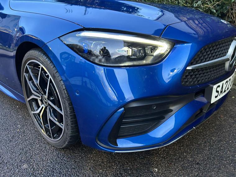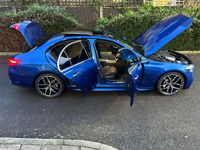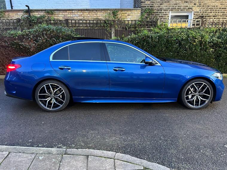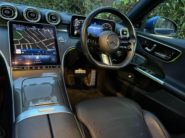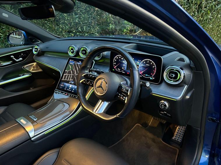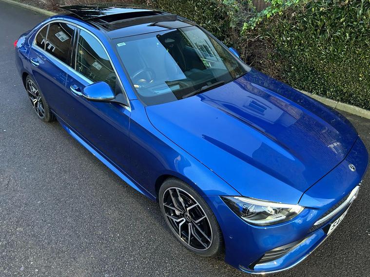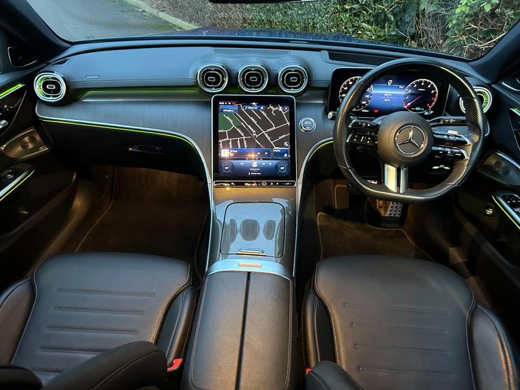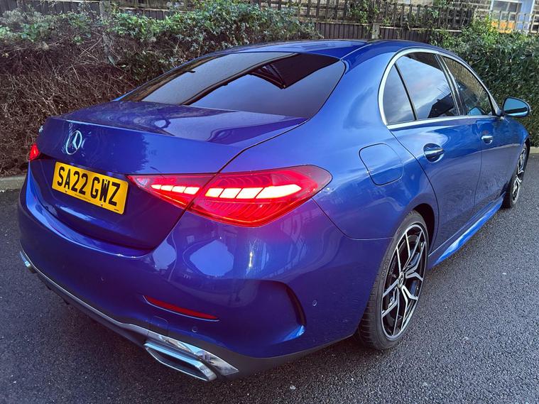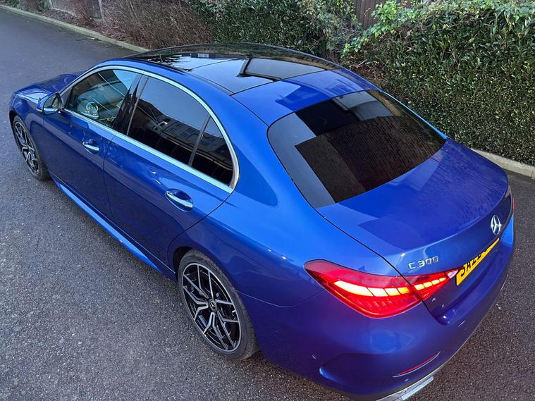 VAT QUALIFYING! PANORAMIC SUNROOF! This 2022 Mercedes Benz C Class C300h AMG Line (Premium Plus) has had only one owner from new, offering a pristine example of this sophisticated vehicle. It features a powerful 2.0L Petrol Hybrid engine, meeting Euro 6 emission standards. Notable features include advanced Digital Light headlamps, a convenient Head Up Display, and Active Blind Spot Assist for enhanced safety. The KEYLESS GO system provides effortless access, while the heated front seats ensure comfort in all conditions.The C300h AMG Line (Premium Plus) variant stands out with its impressive performance, achieving 0-62mph in just 6.0 seconds. This swift acceleration, combined with the hybrid technology, demonstrates a superior driving experience compared to many other vehicles in its class. The AMG Line trim further enhances its sporty appeal and dynamic handling, making this Mercedes Benz a compelling choice for those seeking both efficiency and exhilarating performance..