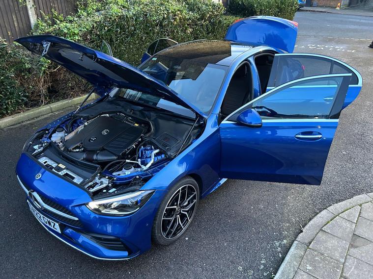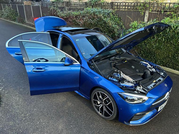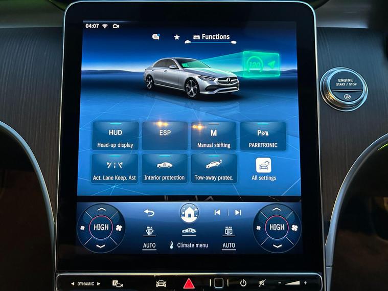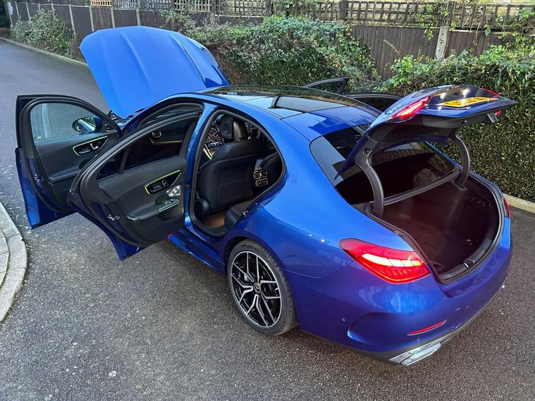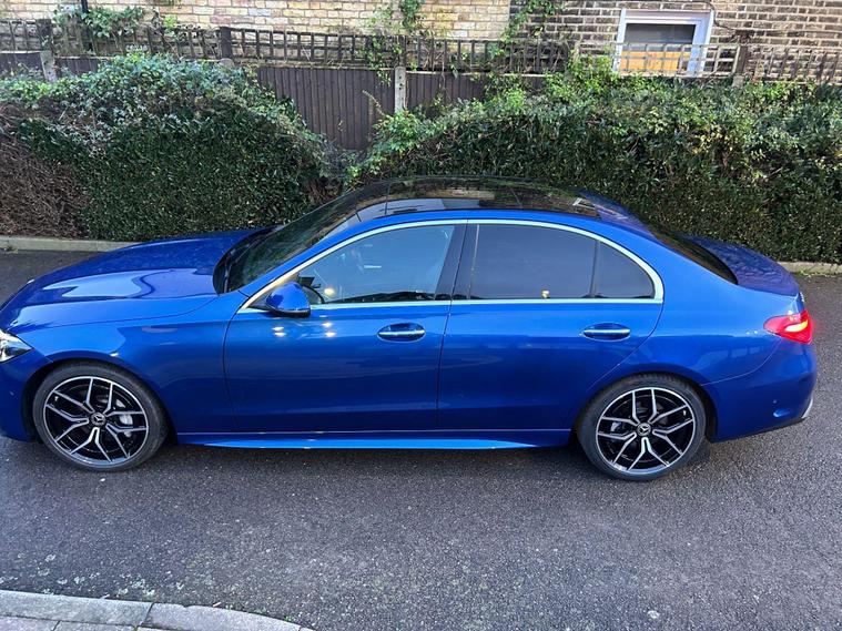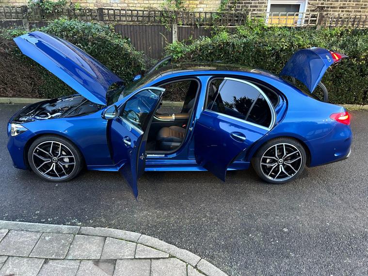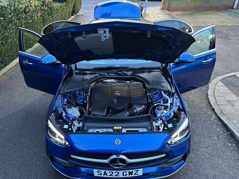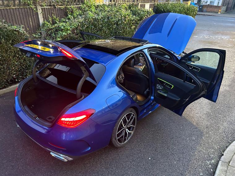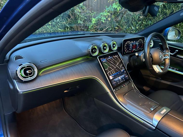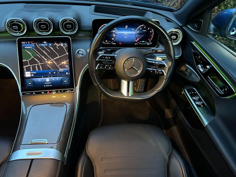 VAT QUALIFYING! PANORAMIC SUNROOF! This 2022 Mercedes Benz C Class C300h AMG Line (Premium Plus) has had only one owner from new, offering a pristine example of this sophisticated vehicle. It features a powerful 2.0L Petrol Hybrid engine, meeting Euro 6 emission standards. Notable features include advanced Digital Light headlamps, a convenient Head Up Display, and Active Blind Spot Assist for enhanced safety. The KEYLESS GO system provides effortless access, while the heated front seats ensure comfort in all conditions.The C300h AMG Line (Premium Plus) variant stands out with its impressive performance, achieving 0-62mph in just 6.0 seconds. This swift acceleration, combined with the hybrid technology, demonstrates a superior driving experience compared to many other vehicles in its class. The AMG Line trim further enhances its sporty appeal and dynamic handling, making this Mercedes Benz a compelling choice for those seeking both efficiency and exhilarating performance..