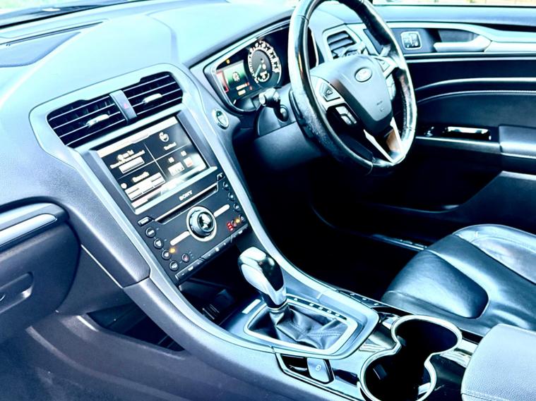 Finished in Moondust Silver Metallic with Ebony Leather Upholstery and boasting exceptionally low mileage for its age, this 2015 Ford Mondeo Titanium presents a superb ownership proposition. With only two previous owners and a full dealership service history, including a service on 14 January 2025 at 65, 303 miles, this Euro 6 compliant 2.0L diesel model has been meticulously maintained. The car will benefit from a new service prior to handover and a New MOT. A clear vehicle history check and a huge history file confirms its excellent provenance, and it comes with a 6 month Nationwide Premium Parts & Labour warranty for your peace of mind.This Mondeo Titanium trim level offers a host of desirable features designed for comfort and convenience. Enjoy dual zone electronic automatic climate control, with independent rear air conditioning ensuring everyone stays comfortable. Stay connected and entertained with Bluetooth audio streaming, and benefit from the ease of automatic headlights. The generous boot space provides ample room for all your needs, the 8in Touchscreen Colour Display gives you access to the Ford DAB Audio System and Ford DAB Navigation System. Controls for the Cruise Control, Audio system and Phone are located on the Leather Multi-Function Steering wheel along with Paddle shift. The Full Glass Panoramic roof makes the interior nice and bright and has an electric sun-blind. Electrically adjustable front seats are also heated along with the steering-wheel for that extra bit of comfort along with Heated Electric front seats and heated Steering wheel.Seed the video in the advert or use this link: https://youtu.be/rrlQowyqq3k?si=jYk1-11u_r8cXpZp0% Deposit when financing through us.DELIVERY AVAILABLE. The Car Comes With A 6 Month Premium Nationwide Parts And Labour Warranty Finance Available From 10.9 % Apr All Inspections Welcome AA/RAC Px Welcome Viewing By Appointment Only Please Call John On 01992692105 Or 01992692105.