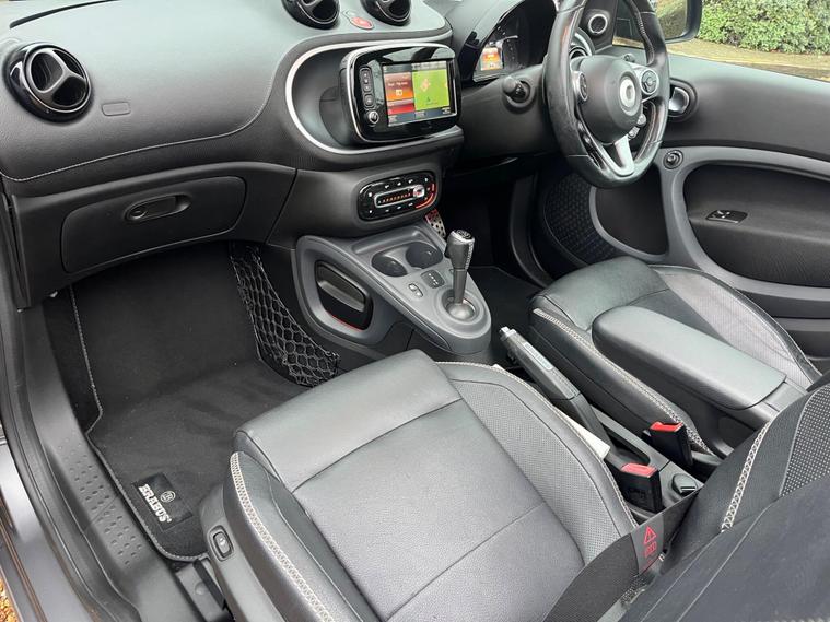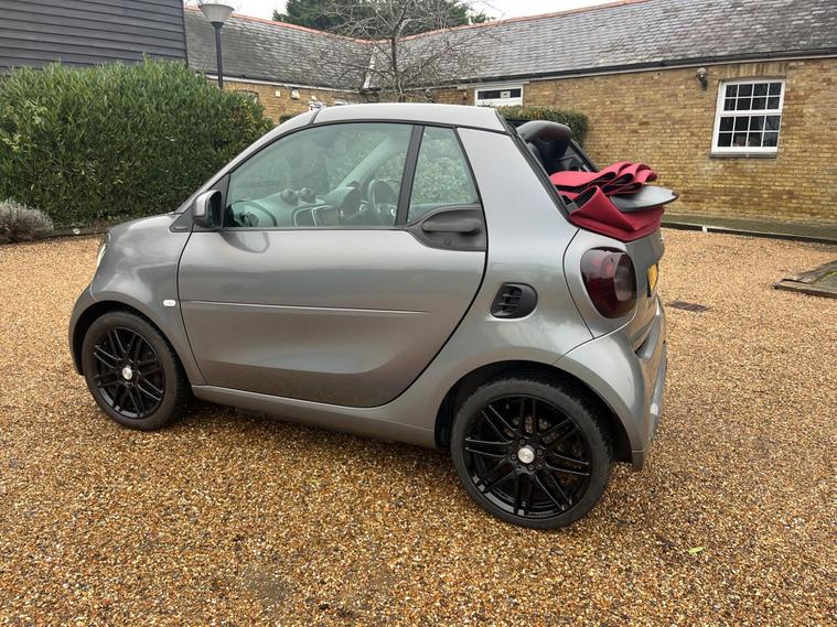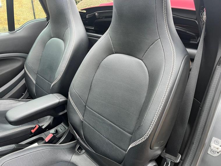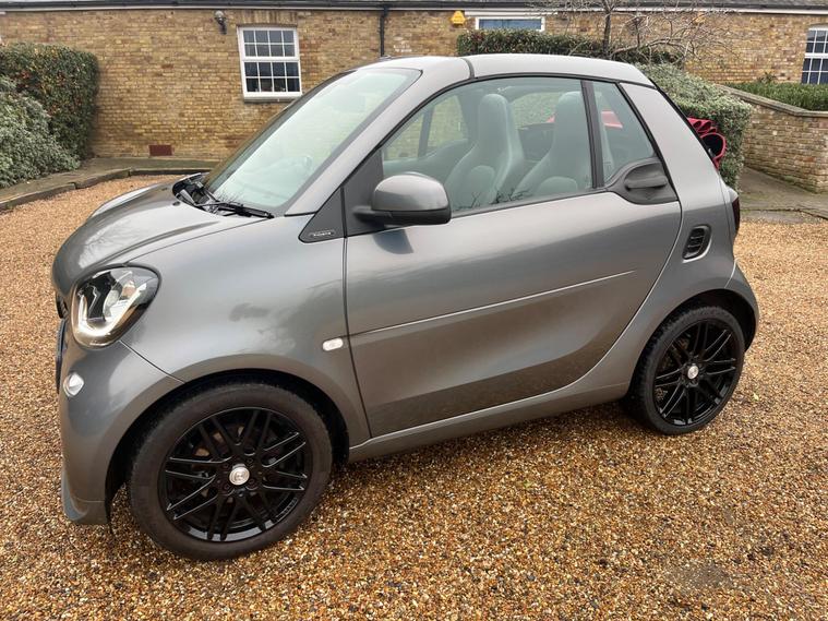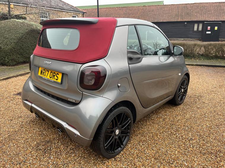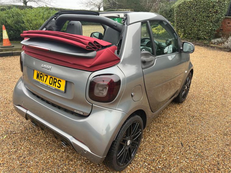 This 2017 Smart Fortwo T BRABUS Xclusive boasts a full service history and an MOT valid until August 2026, offering excellent peace of mind. This stylish model features a striking Graphite Grey Matt Paint Tridion Safety Cell and a vibrant Electric Tritop Fabric Soft Top in Red with a Grey lining. Under the bonnet, you'll find a 0.9L Petrol Engine compliant with Euro 6 emissions standards. The BRABUS Xclusive trim level ensures a premium experience, enhanced by the Cool and Audio Package with automatic climate control and Bluetooth connectivity. Further adding to its appeal are the Premium Plus Equipment Line, including automatic headlights, rear camera and parking sensors, and heated seats for both the driver and front passenger.This Smart Fortwo excels with a remarkable fuel economy of 61 mpg, demonstrating its efficiency compared to other vehicles. Its low CO2 emissions also contribute to its environmentally conscious design. You'll appreciate the surprisingly large boot space, making it practical for everyday use. With a clear vehicle history check and a 3 month warranty included, this vehicle represents a well maintained and thoughtfully equipped option.Please call 01245482565 for further informationAppointment only.