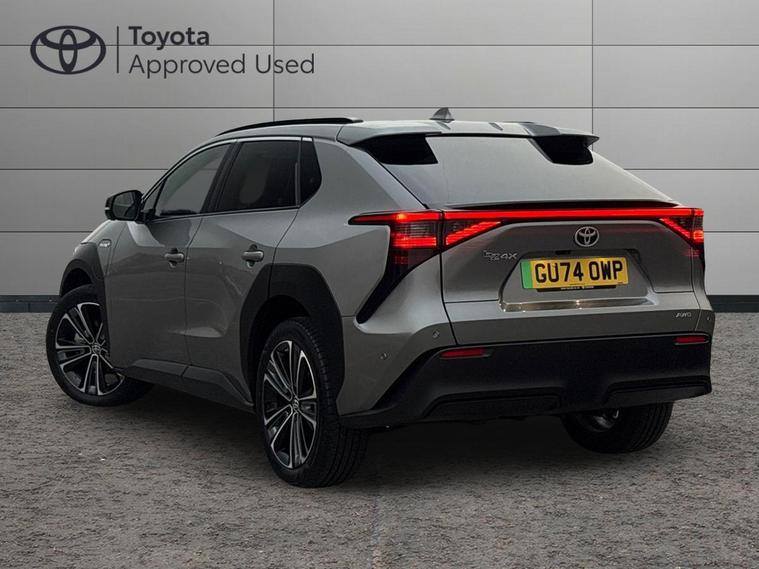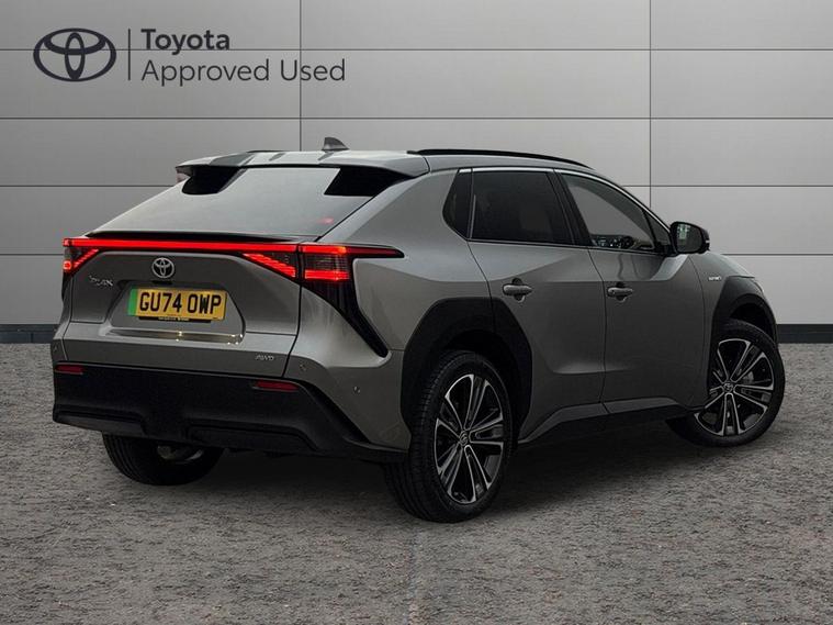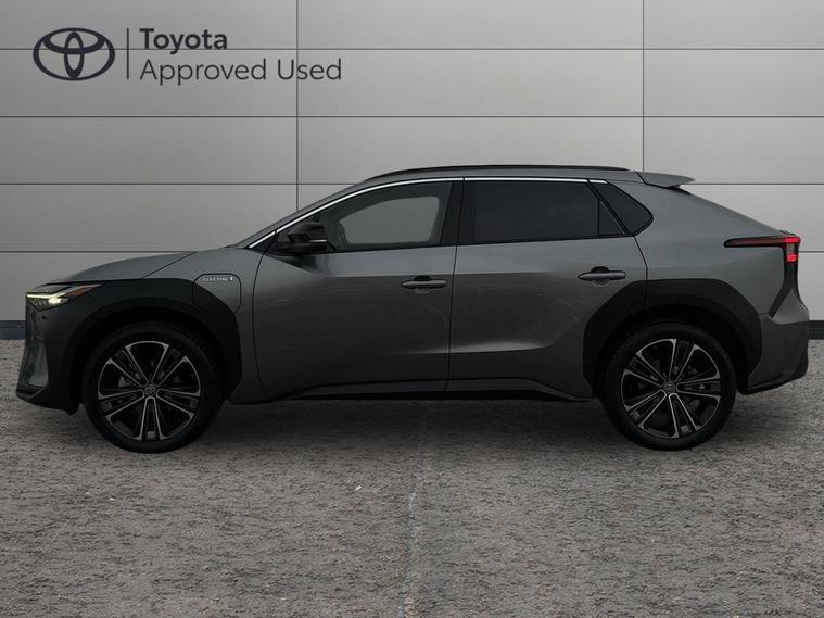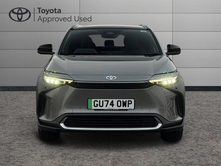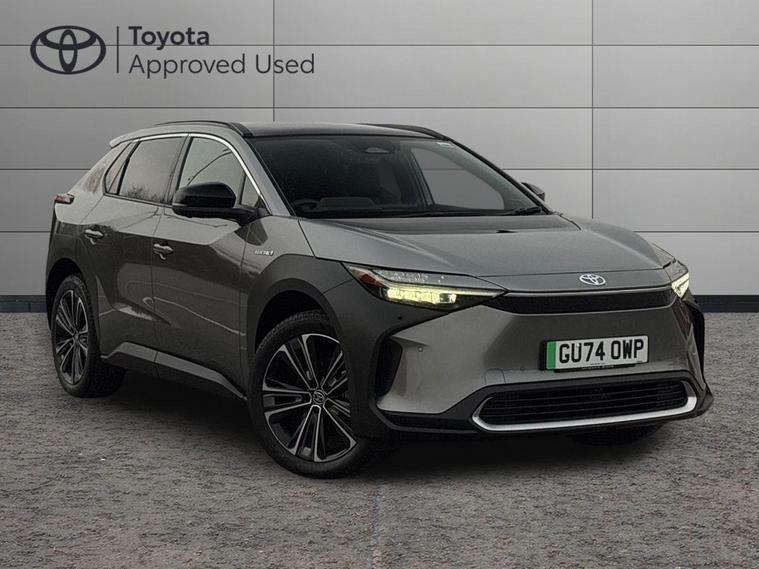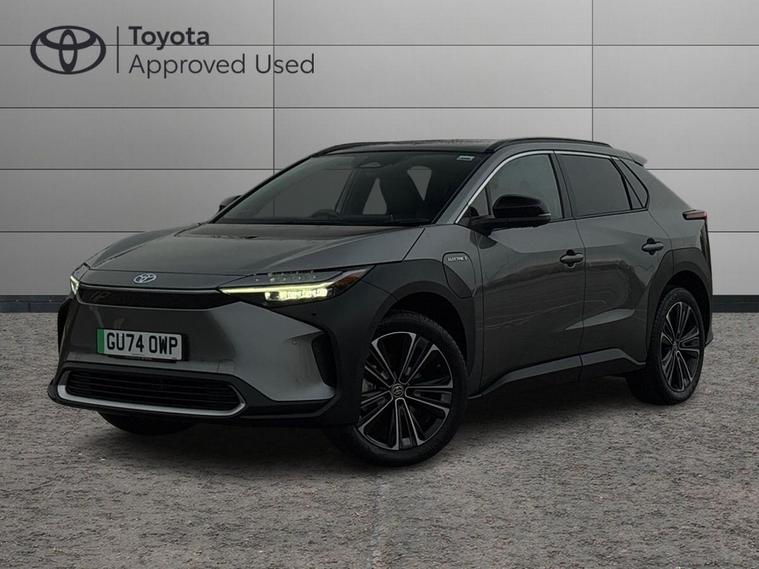 This 2024 Toyota bZ4X Premiere Edition is a Toyota manufacturer approved electric vehicle with a full service history, last serviced on 7th November 2025 at 8, 027 miles, and benefits from MOT valid until September 2027 and 21 months remaining warranty. This Four Wheel Drive electric SUV boasts a 71 kWh battery offering a maximum range of 258 miles. It features Smart Entry and Push-Button Start for effortless access, a 360 Panoramic View Monitor with parking assistance, and Adaptive Cruise Control for enhanced driving convenience.Further enhancing your driving experience, this bZ4X includes rear parking sensors with automatic pedestrian and car braking, and a driver's seat with memory function. These features collectively demonstrate a superior level of comfort and safety compared to other vehicles in its class. Charging is convenient, with a full charge at home taking approximately 9 hours and 10 minutes using a 7kW charger, and a rapid charge to 80% achievable in just 28 minutes at a public charging station..