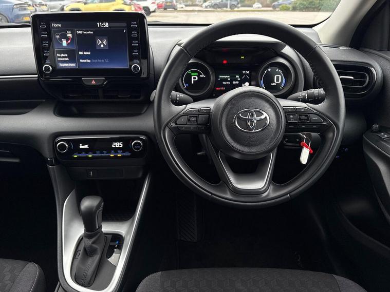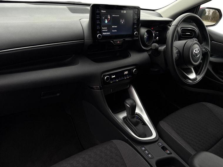 This 2023 Toyota Yaris VVT-h Design is a Toyota manufacturer approved vehicle with a full service history and only one owner from new, boasting an impressive 10, 440 miles. This Euro 6 compliant model features a 1.5L petrol hybrid engine and comes with a 12 month warranty for your peace of mind. Its MOT is valid until September 2026, and it was last serviced on 2025-02-03 at 7, 148 miles. Notable features include smartphone integration with Apple CarPlay and Android Auto, LED headlights with a front light guide, automatic air conditioning, and Toyota Safety Sense 2 with adaptive cruise control.Experience exceptional fuel economy with this Yaris, achieving a remarkable 69 mpg, which is significantly better than many other vehicles in its class. Its low CO2 emissions also contribute to its appeal, making it an environmentally conscious choice. This well maintained and low mileage Yaris represents excellent value, offering a blend of advanced technology, efficiency, and Toyota's renowned reliability..