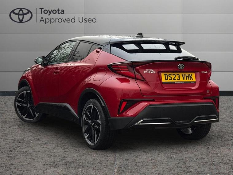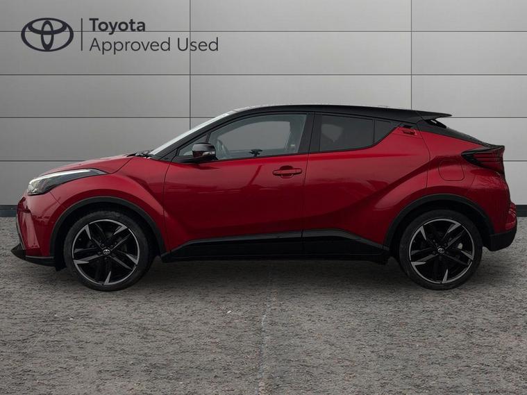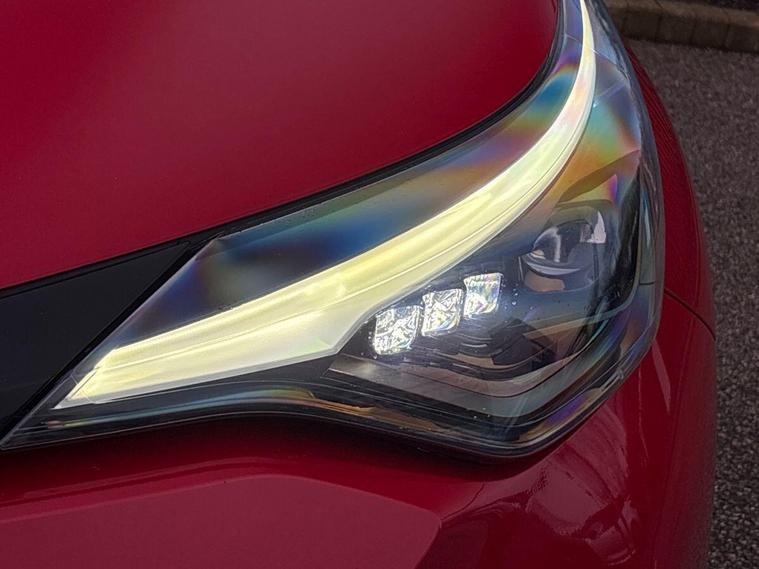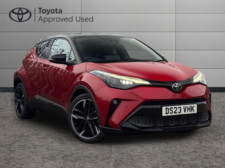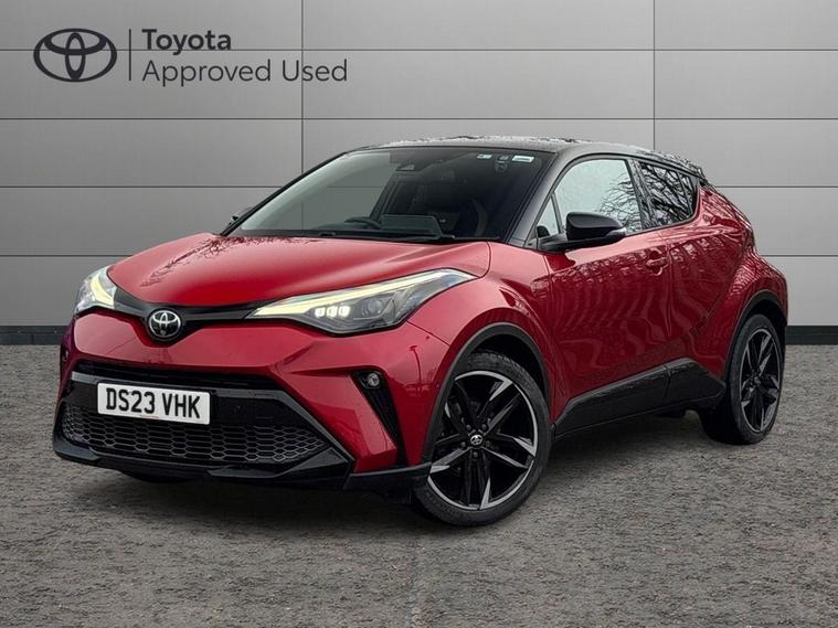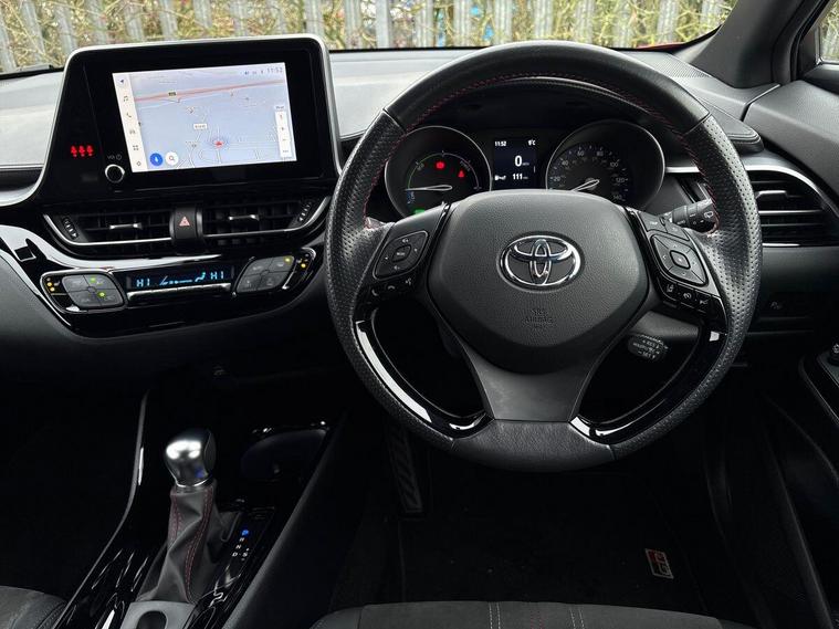 This 2023 Toyota C-HR VVT-h GR SPORT is a Toyota manufacturer approved vehicle with a full dealership service history, having had only one owner. It boasts an MOT valid until July 2026 and comes with a 12 month warranty for your peace of mind. This Euro 6 compliant model features a 2.0L Petrol Hybrid engine and was last serviced on 24th July 2025 at 30, 493 miles. Inside, you'll find GR-Sport Alcantara and leather upholstery, an 8in HD Toyota Smart Connect Multimedia System with wireless phone charging, adaptive LED headlights, and adaptive cruise control. The Tech Pack adds blind spot assistance, keyless entry, and front and rear parking sensors.The Toyota C-HR GR SPORT offers several highlights that set it apart. Its impressive fuel economy of 53 mpg means fewer trips to the petrol station, while its low CO2 emissions are better for the environment. This model also sits in a low insurance group, potentially saving you money on your annual premiums. For those who appreciate performance, it accelerates from 0-62mph in a brisk 8.2 seconds, demonstrating a responsive driving experience..
