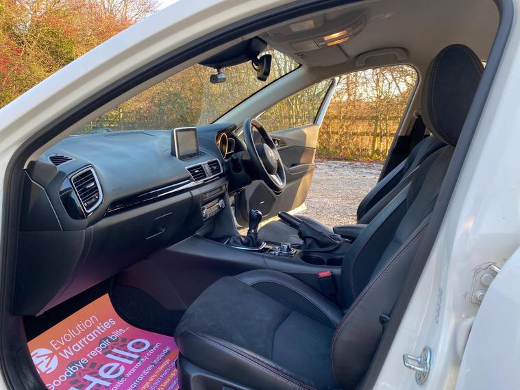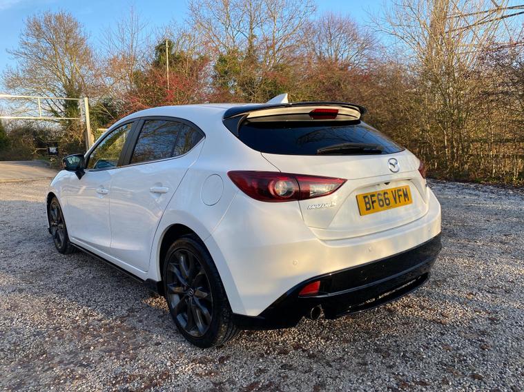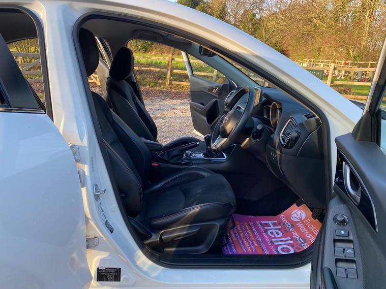 This 2016 Mazda3 SKYACTIV-G Sport Black is a well maintained example with only two previous owners and a clear vehicle history check. It features a responsive 2.0 litre petrol engine, meeting Euro 6 emissions standards. Inside, you will find a comfortable cabin equipped with Smart Keyless Entry, integrated Bluetooth for seamless connectivity, and dual-zone climate control air conditioning. For added comfort, the front seats are heated with three stage settings, and the steering wheel is also heated, perfect for cooler mornings.This Mazda3 offers a compelling package with several highlights that set it apart. Its acceleration from 0-62mph in just 8.9 seconds demonstrates its spirited performance. The generous boot space ensures practicality for everyday needs and longer journeys. Furthermore, its low insurance group rating makes it an economical choice for many drivers, indicating it is better than many similar vehicles in its class..