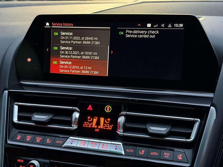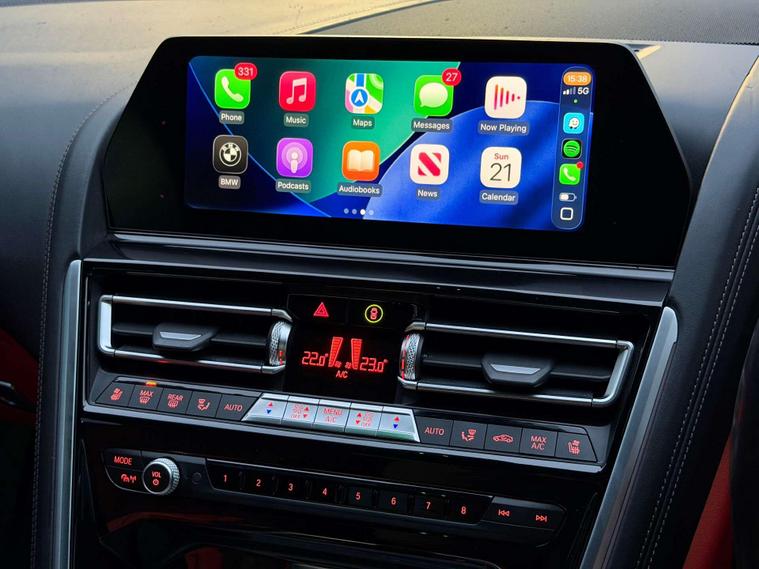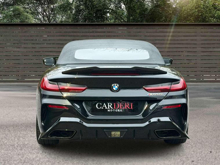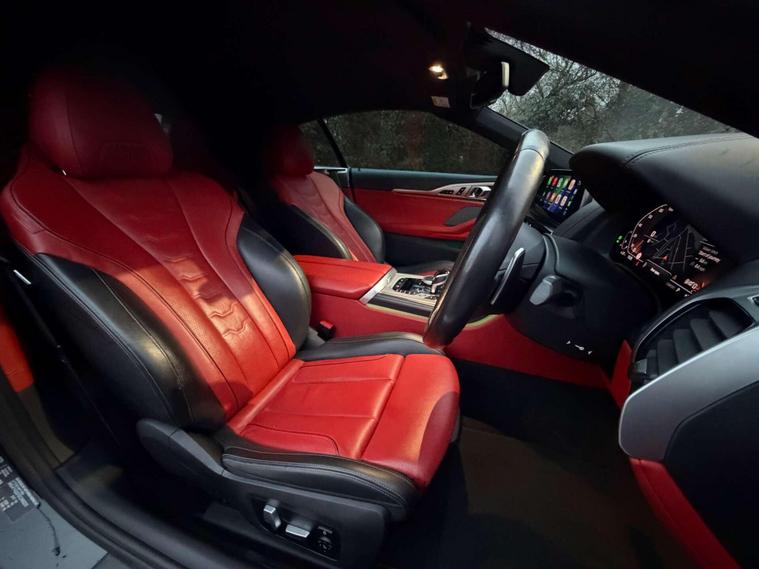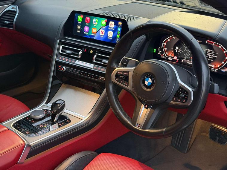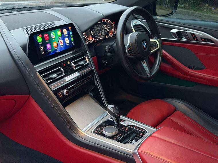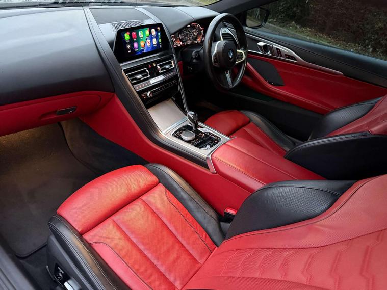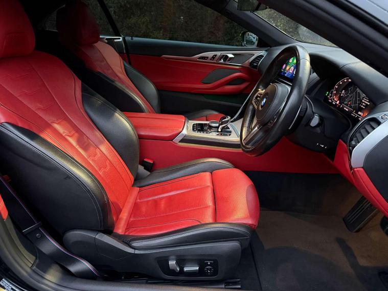 This BMW M850i Convertible is a flagship grand tourer in the truest sense—effortless V8 performance, unmistakable presence, and open-top luxury finished to an exceptional standard.Presented in Black Sapphire, the exterior is elevated by the striking 20” M Light Y-Spoke 728M Gloss Black alloy wheels, sitting on performance tyres with a mixed setup for optimal grip and balance. Subtle but purposeful detailing is enhanced by BMW Individual High-Gloss Shadowline with extended contents, giving the car a sharp, modern edge.Step inside and the cabin immediately sets this car apart. The interior is trimmed in BMW Individual Extended Merino Leather in Fiona Red with Black contrast, creating a bold yet refined atmosphere that feels both special and timeless. M seat belts add a discreet motorsport touch, while the Premium Package delivers the comfort, technology and convenience expected of BMW’s luxury flagship convertible.Powered by BMW’s formidable twin-turbo V8, the M850i offers smooth, relentless acceleration paired with effortless cruising ability—whether roof up or down. It’s a car that feels equally at home carving through country roads or gliding down the motorway in total comfort.A superb example of BMW Individual craftsmanship and M Performance DNA—this M850i Convertible is the perfect blend of power, luxury, and presence..