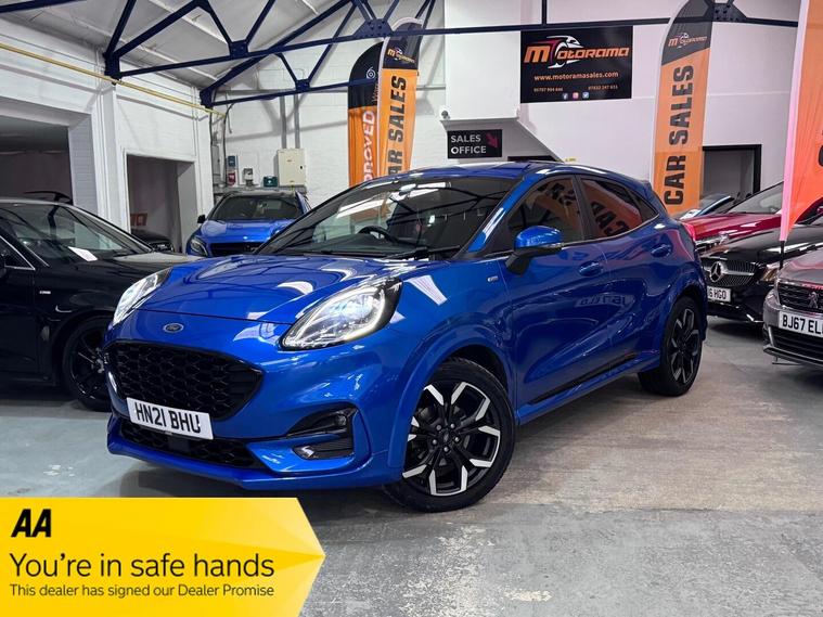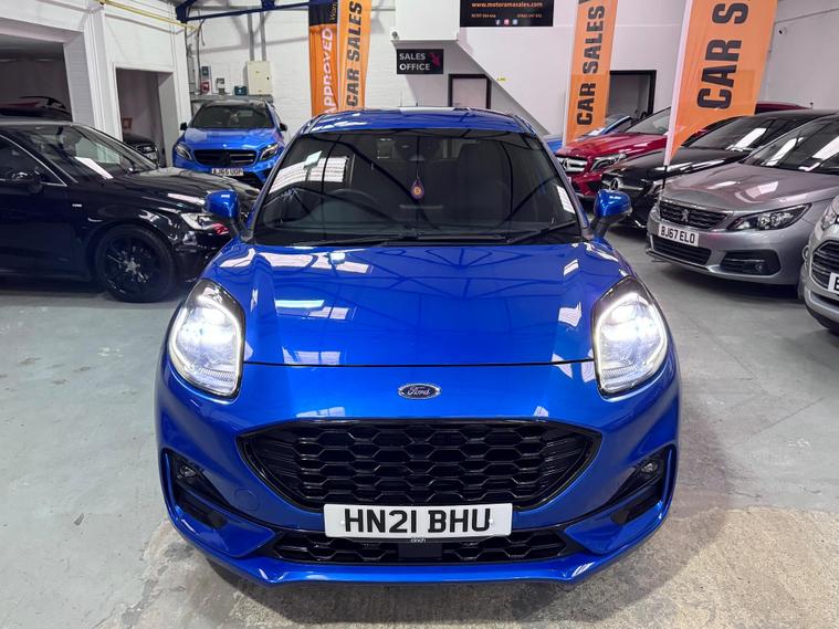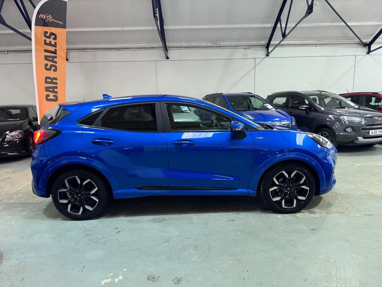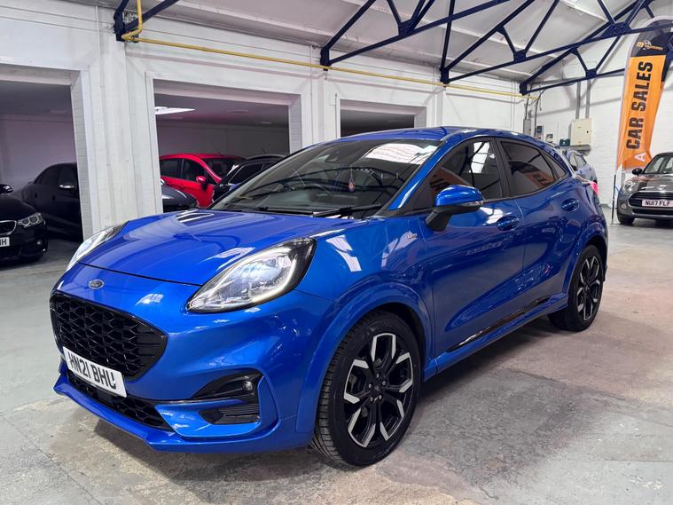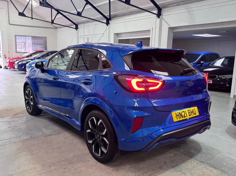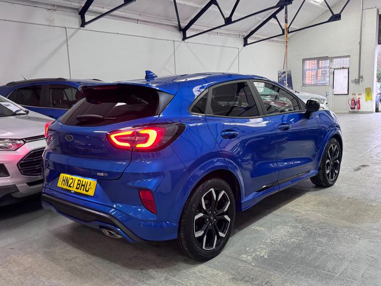This 2021 Ford Puma ST-Line X offers a compelling blend of style and technology, making it a standout choice. Powered by an efficient 1.0 litre petrol engine, this Euro 6 compliant model delivers an impressive 0-62mph in just 8.9 seconds. Inside, you'll find a host of premium features designed for your comfort and convenience, including wireless phone charging, a B&O Premium Audio System, and Ford SYNC 3 Navigation with Android Auto and Apple CarPlay. Stay comfortable in any weather with the Electronic Air Temperature Control, and manoeuvre with ease thanks to the rear parking sensors.Experience exceptional efficiency with a highlight fuel economy of 51 mpg, demonstrating how this Ford Puma performs better than many similar vehicles. Its low CO2 emissions further underline its environmentally conscious design. This ST-Line X variant is equipped to provide an elevated driving experience, combining performance, advanced technology, and impressive economy for a truly superior drive..
