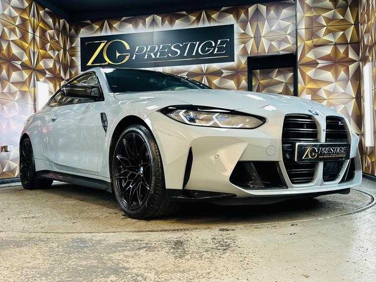 Buy with confidence at ZG Prestige. We are Highly Rated by Auto Trader, recognised as one of the Top 5 Car Dealerships in the UK by CarDealer, and proud to be AA Approved, FCA Regulated, and part of The Motor Ombudsman. With Excellent ratings across Google, eBay, Motors, CarGurus, and PistonHeads, we deliver a trusted service from the town’s largest indoor prestige showroom. Featured Vehicle: BMW M4 3.0 BiTurbo Competition Steptronic M xDrive Euro 6 (s/s) 2dr in Brooklyn Grey with Black Interior. Supplied with 2 Keys, Full Dealerahip Service History. Last Service Carried Out On 15/12/2025. First MOT Due Upon Sale. Excellent condition both inside and out. Our detailed inspection will include replacing any worn wear and tear items like Tyres and Brakes. Some of the Great Specification Includes Ultimate Pack, Heated Steering Wheel, M Carbon Bucket Seats And So Much More. When you buy from ZG Prestige, on this vehicle you will receive a FREE 16-Months Premium Warranty with nationwide coverage, no limit on claims, direct payment to the repairing garage, and protection against mechanical and electrical faults. You can extend the warranty for up to 36 months. Every car also includes 12 months AA Breakdown Cover, a clear Experian HPI report, and a 120+ point pre-delivery inspection including a full computer scan report. We offer nationwide delivery, flexible low-rate finance (PCP & HP) with 0% deposit, unbeatable part-exchange prices, and a 14-day money-back guarantee for complete peace of mind. Virtual appointments are available via phone, WhatsApp, or video call—buy from home, hassle-free. Reserve today for just £99 (Completely refundable). Contact us 24/7 on WhatsApp at 01204219868 or visit dealer's website